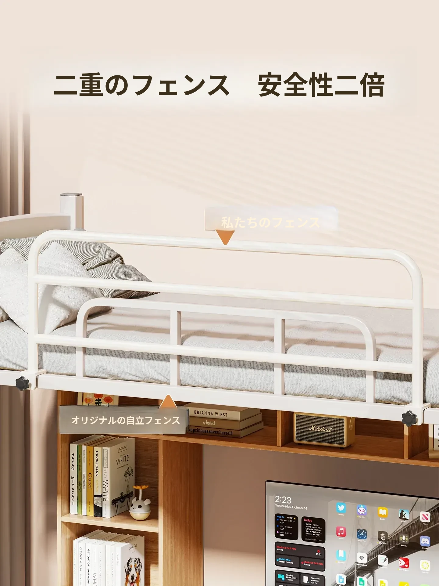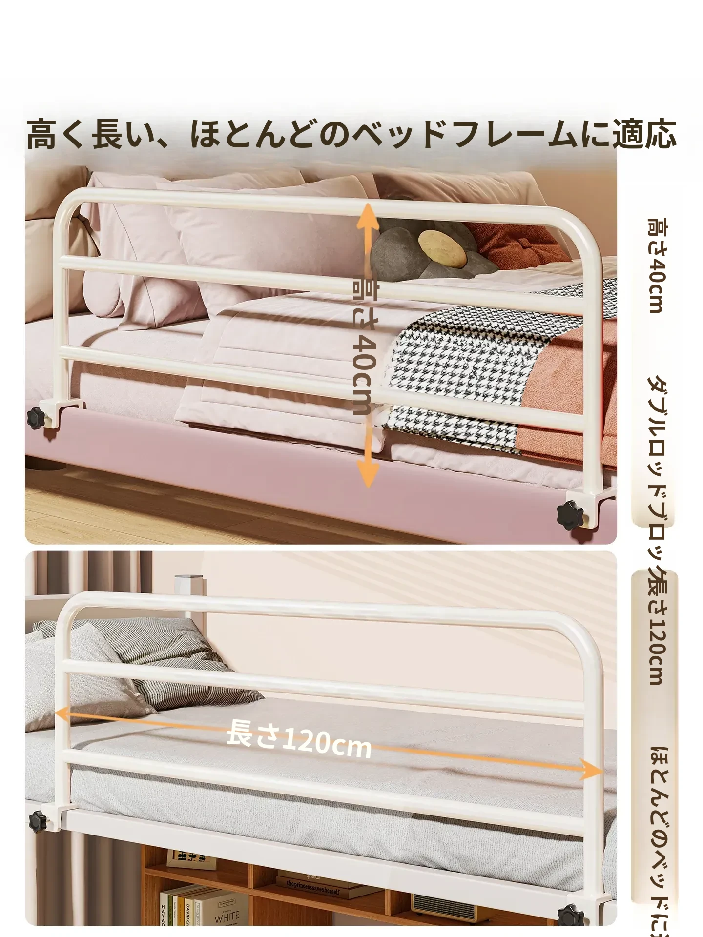 学生寮用安全性抜群!防転落ガード付きベッドサイドフェンス - 高さ調整可能で安心の落下防止!どんな寝具にもフィットするユニバーサルデザイン!安全で快適な学生生活をサポートします!