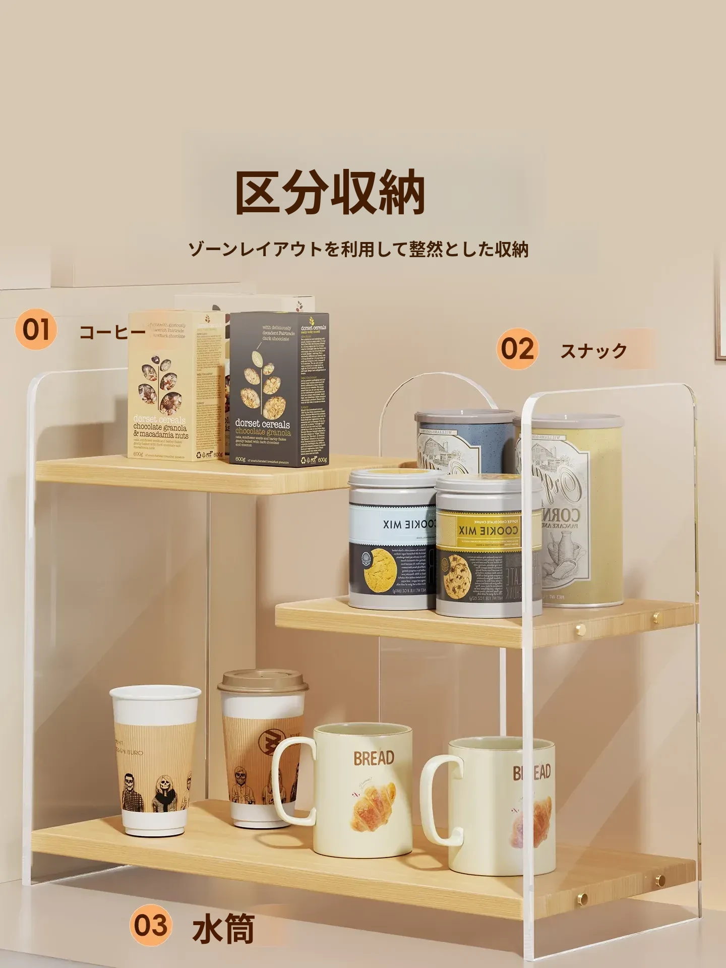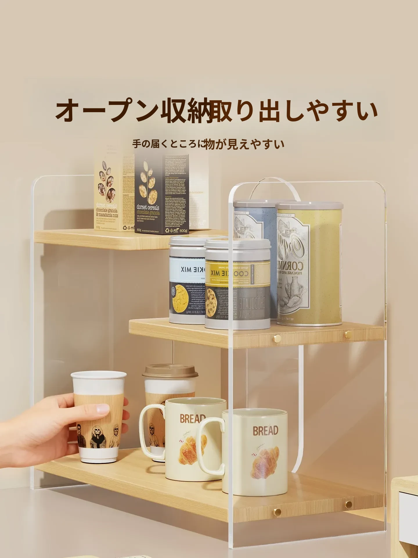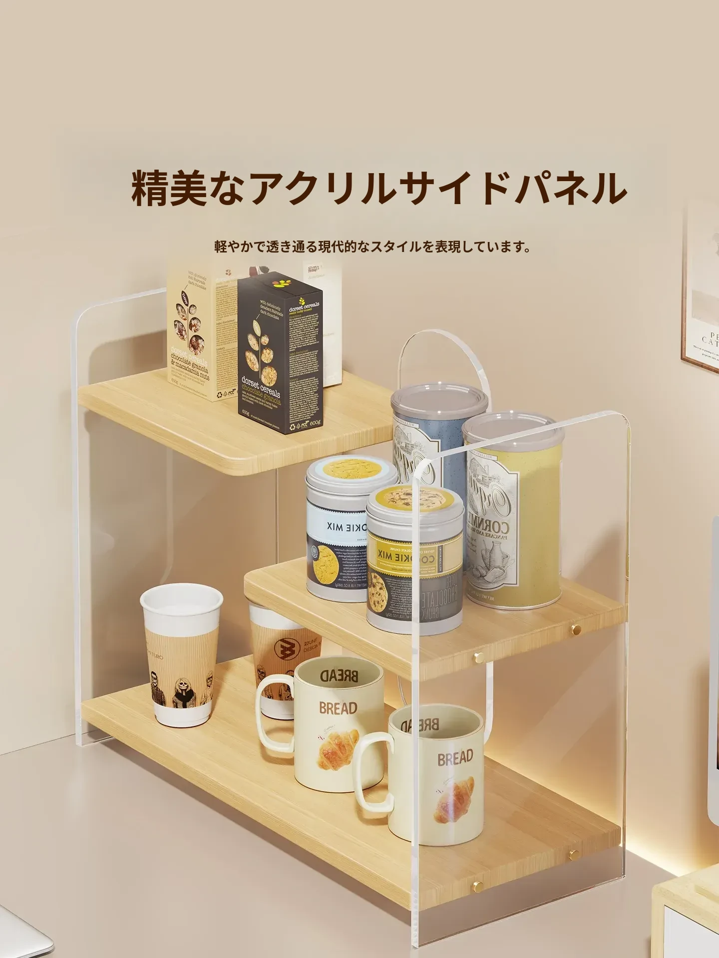 シンプルでモダンなアクリル製カップスタンド!グラスやマグカップを美しくディスプレイできる、収納力抜群のティーセットラック。おしゃれなダイニングスペースを演出する必見アイテム!