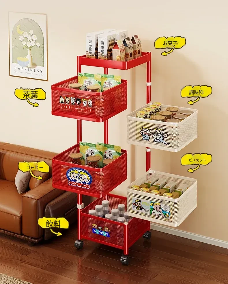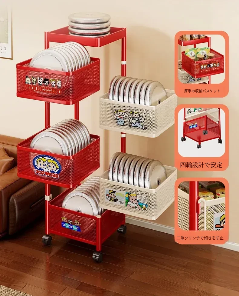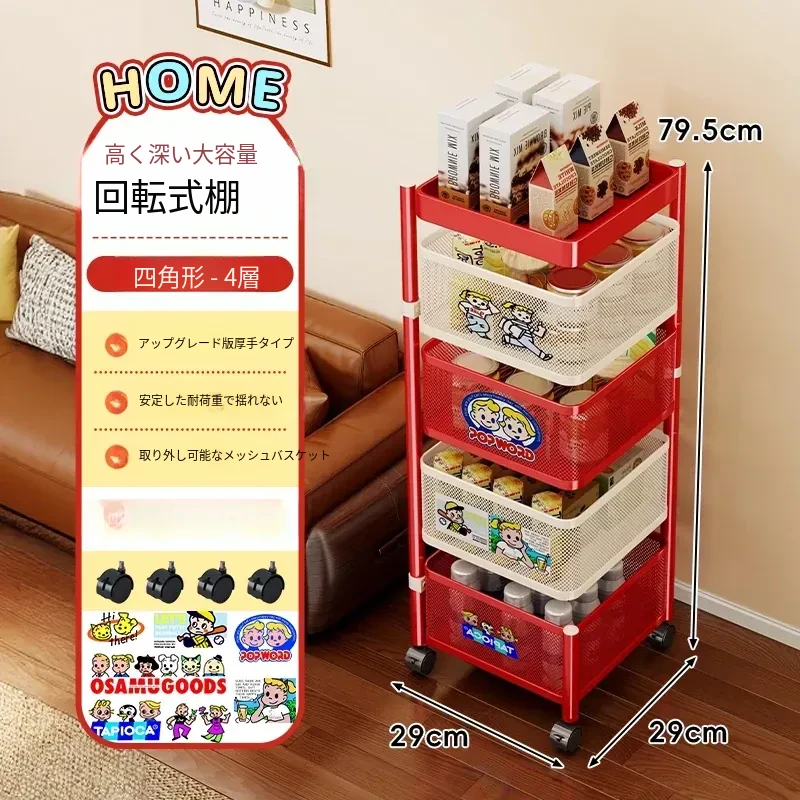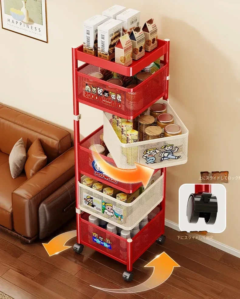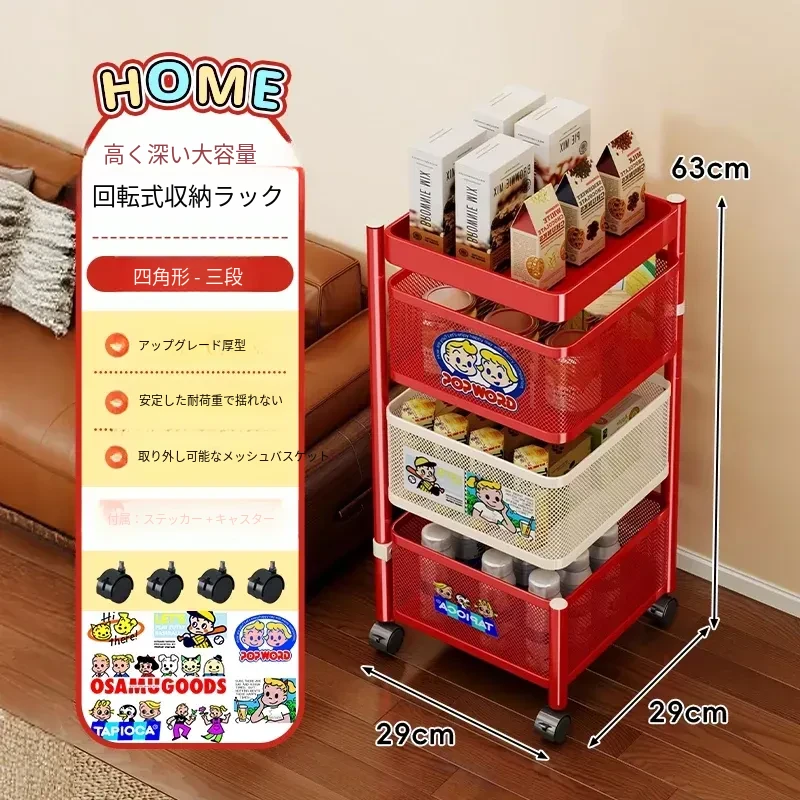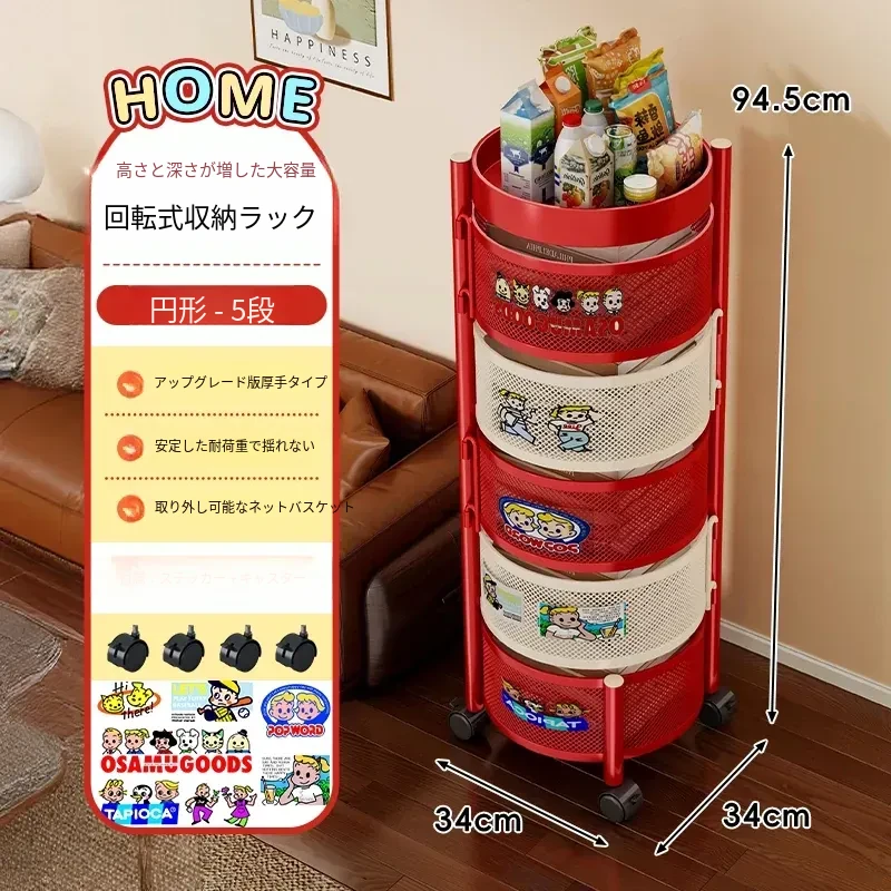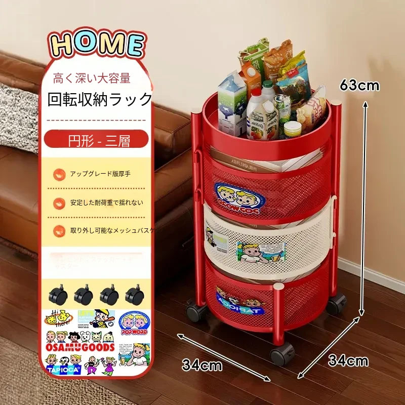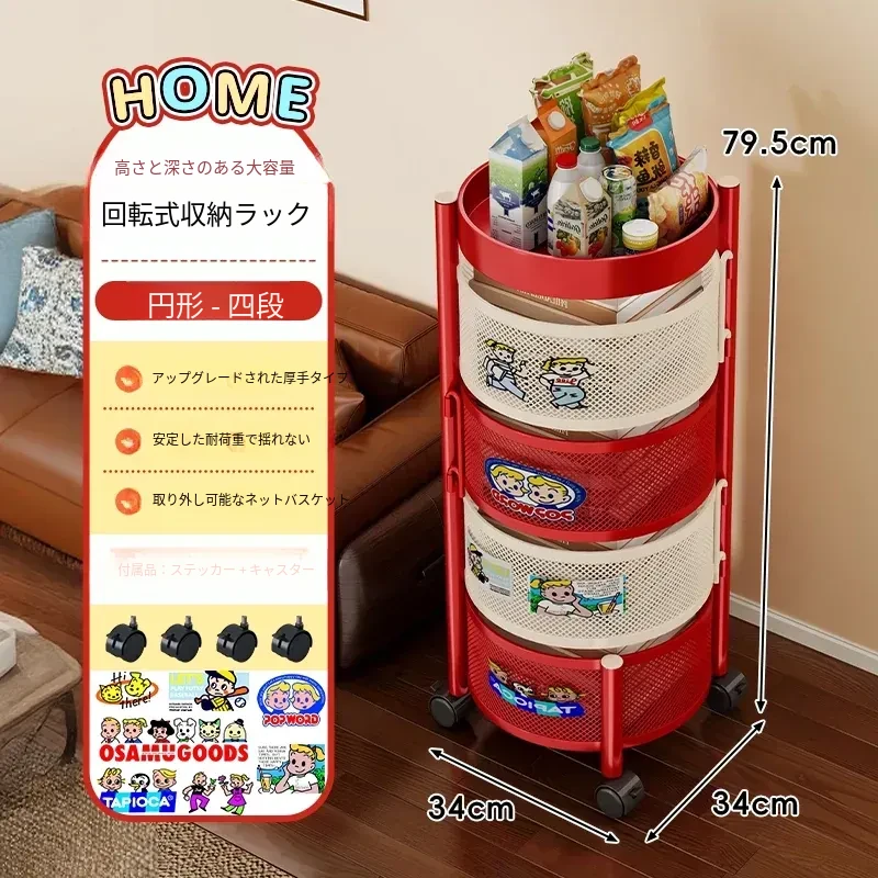 おしゃれなスナックカート!多層回転収納ラックで、キッズのおもちゃもスッキリ整理。移動も簡単な便利な収納アイテムで、部屋をスタイリッシュに演出します!