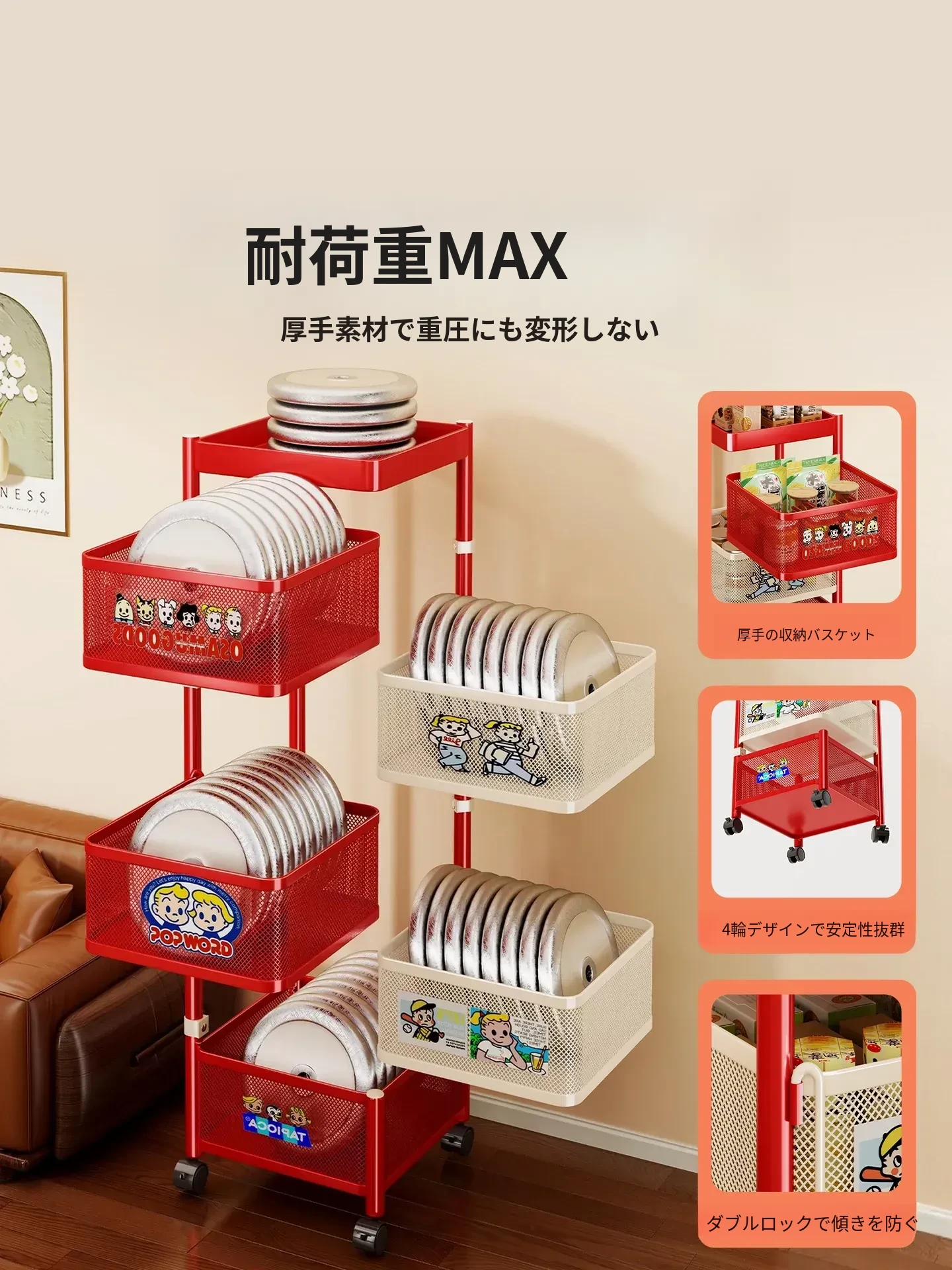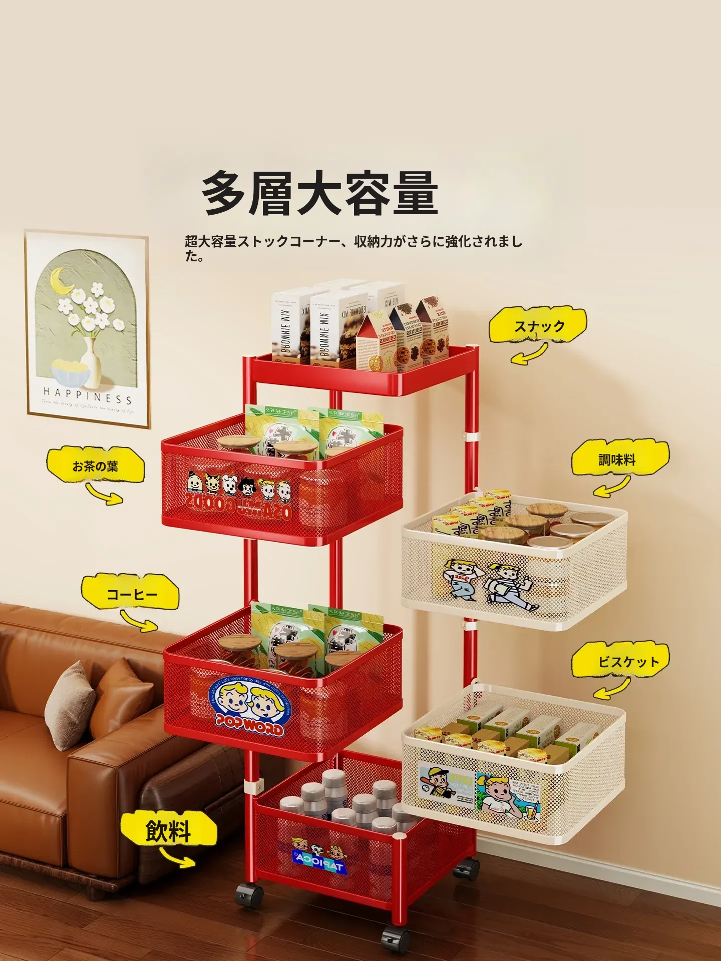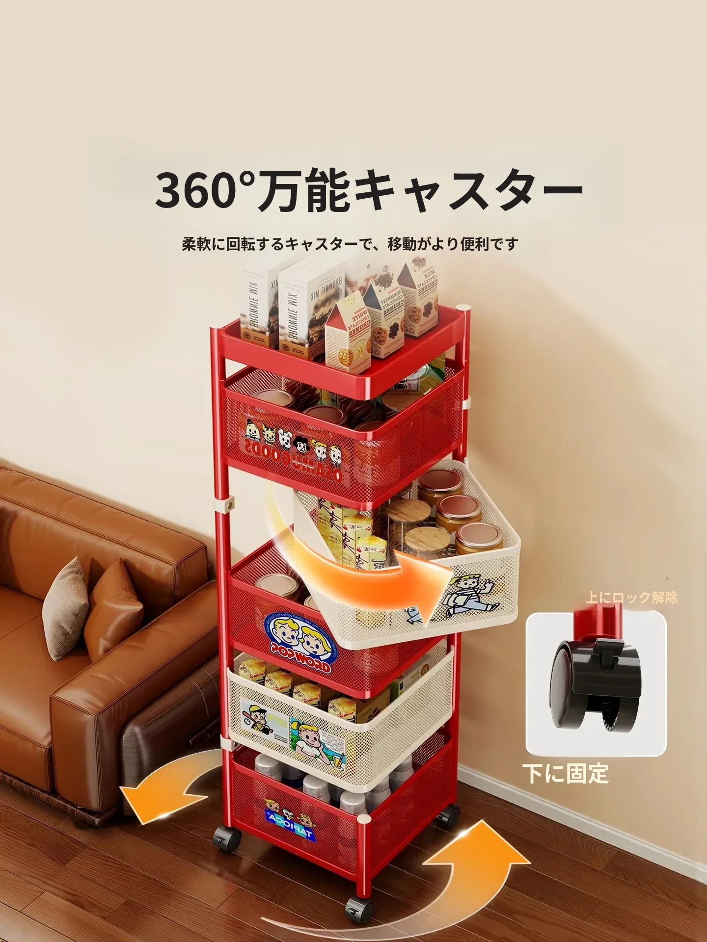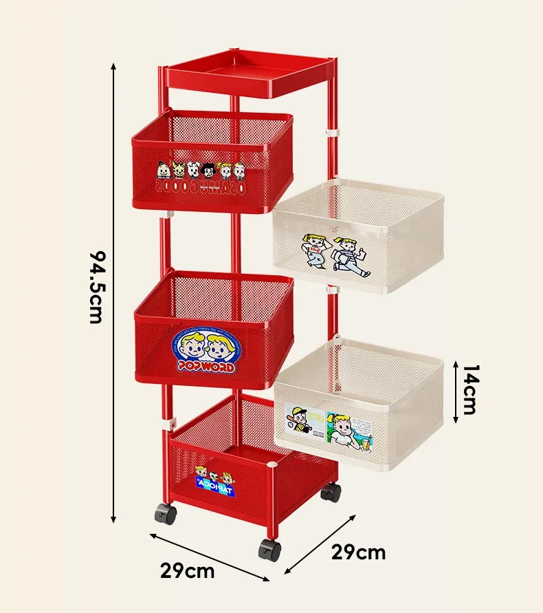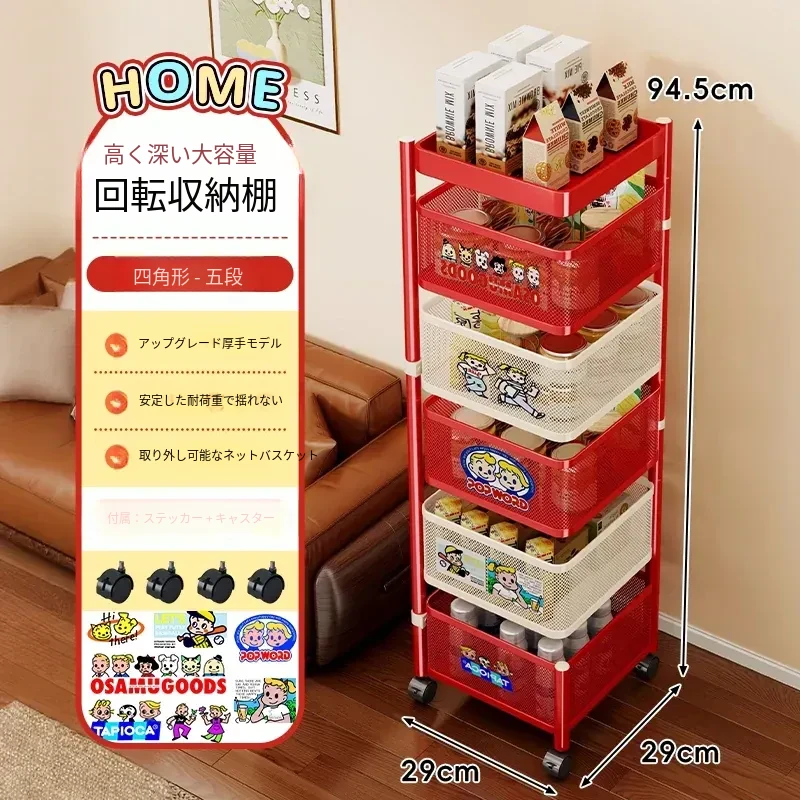 おしゃれなスナックカート!多層回転収納ラックで、キッズのおもちゃもスッキリ整理。移動も簡単な便利な収納アイテムで、部屋をスタイリッシュに演出します!