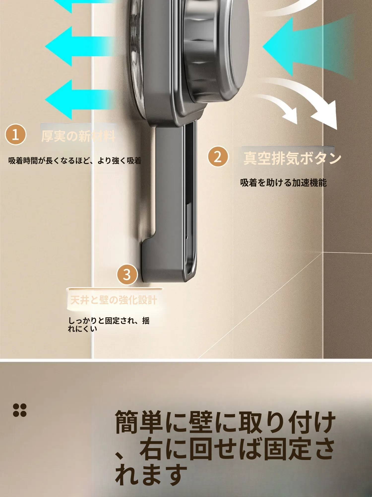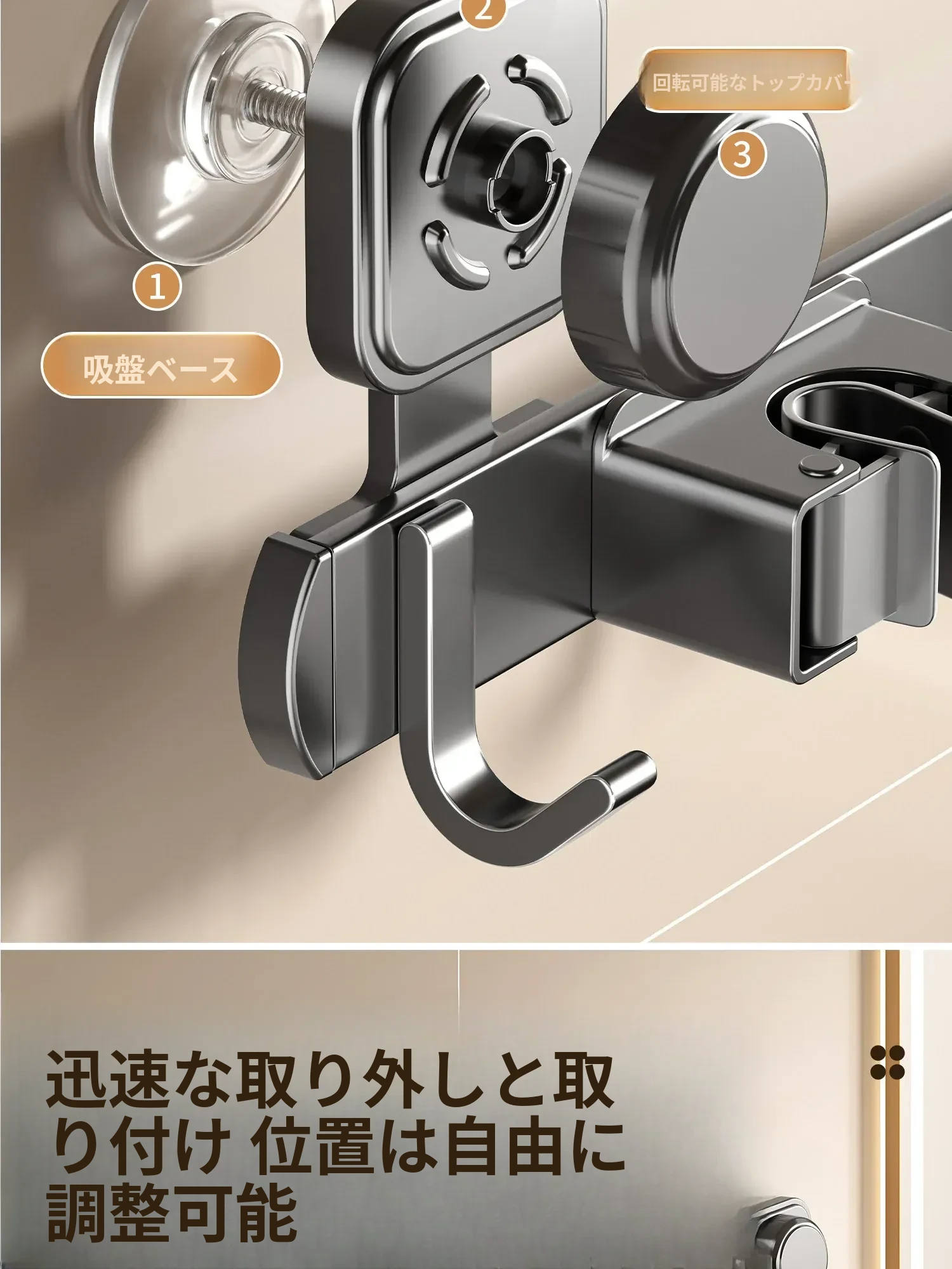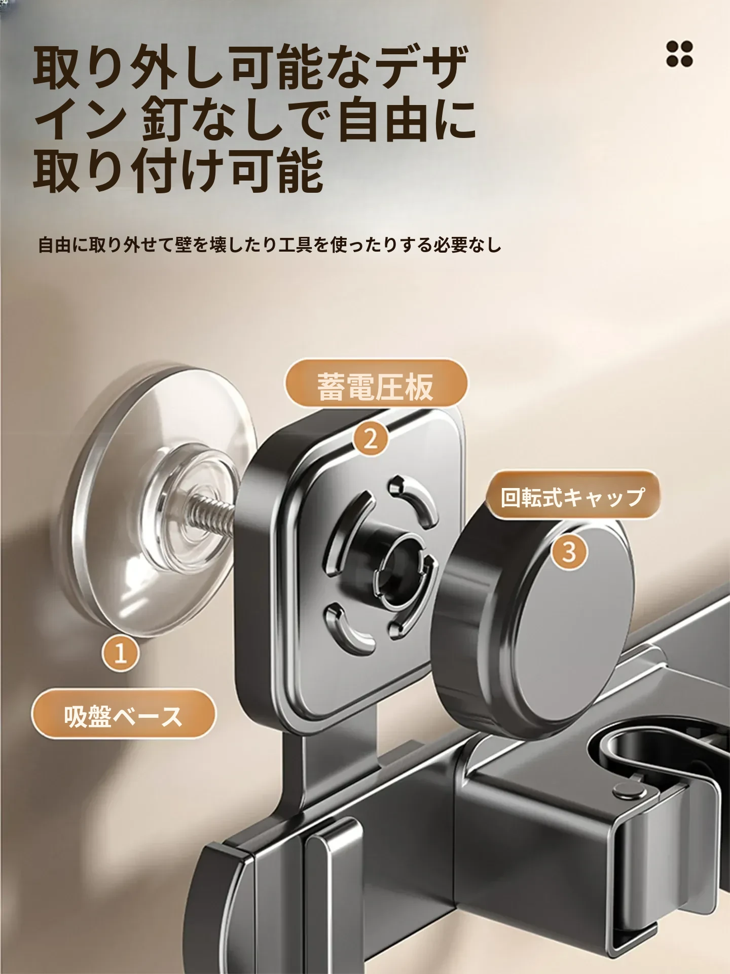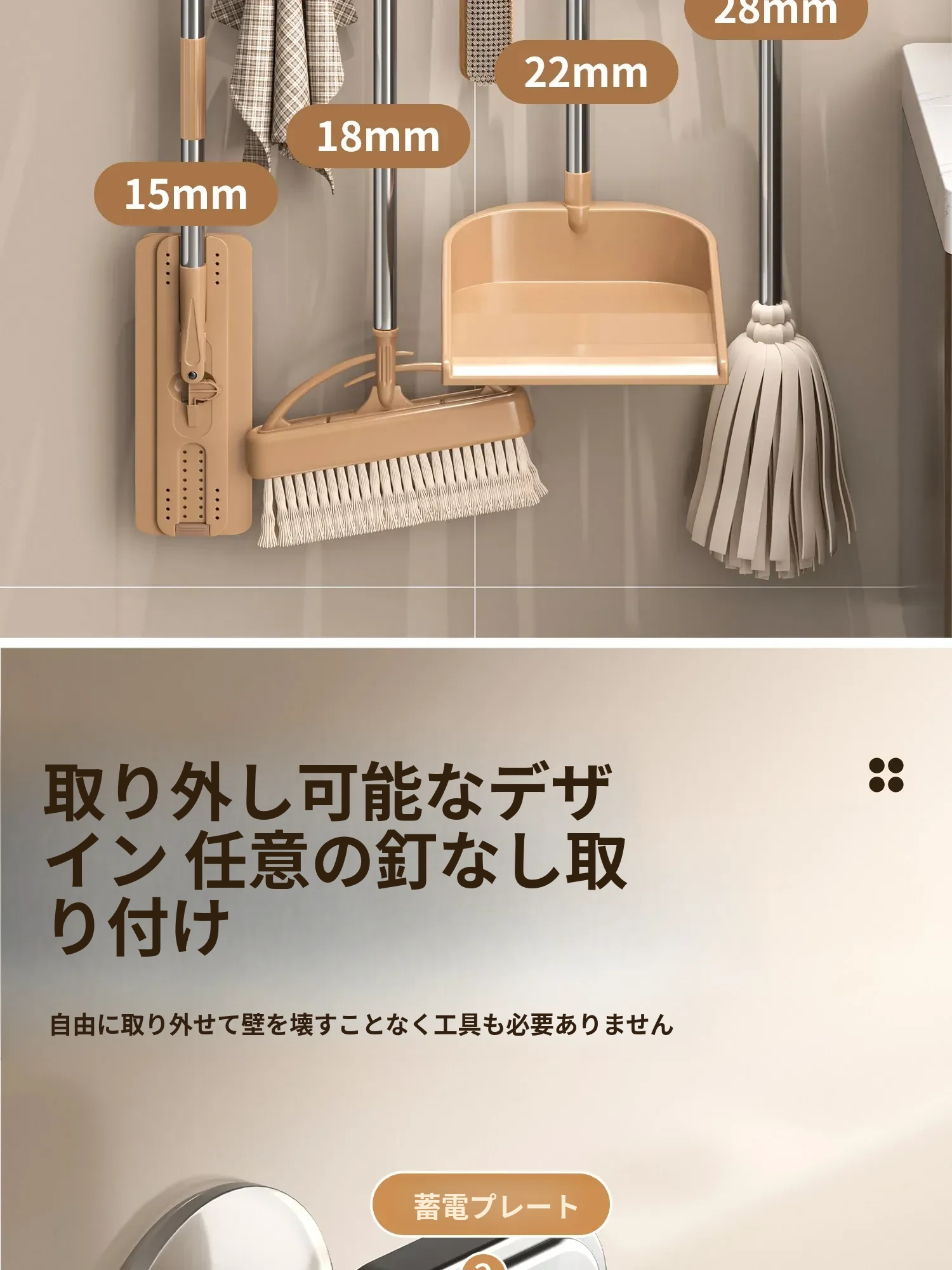 吸盤モップホルダー 壁掛け式 簡単取り付けの収納ラック お風呂やトイレに最適な便利グッズ!掃除道具をスッキリ整理して、スペースを有効活用!