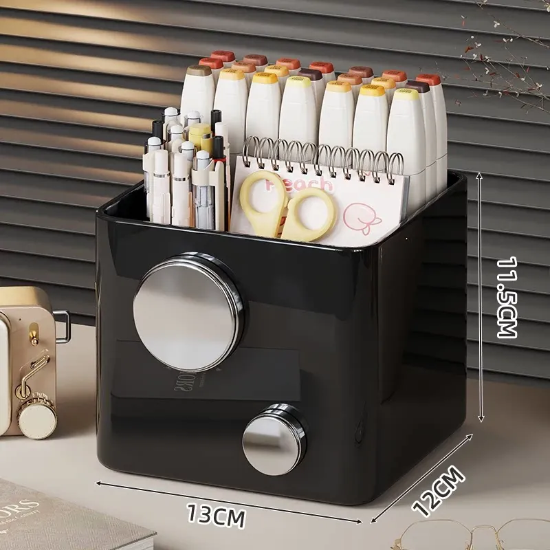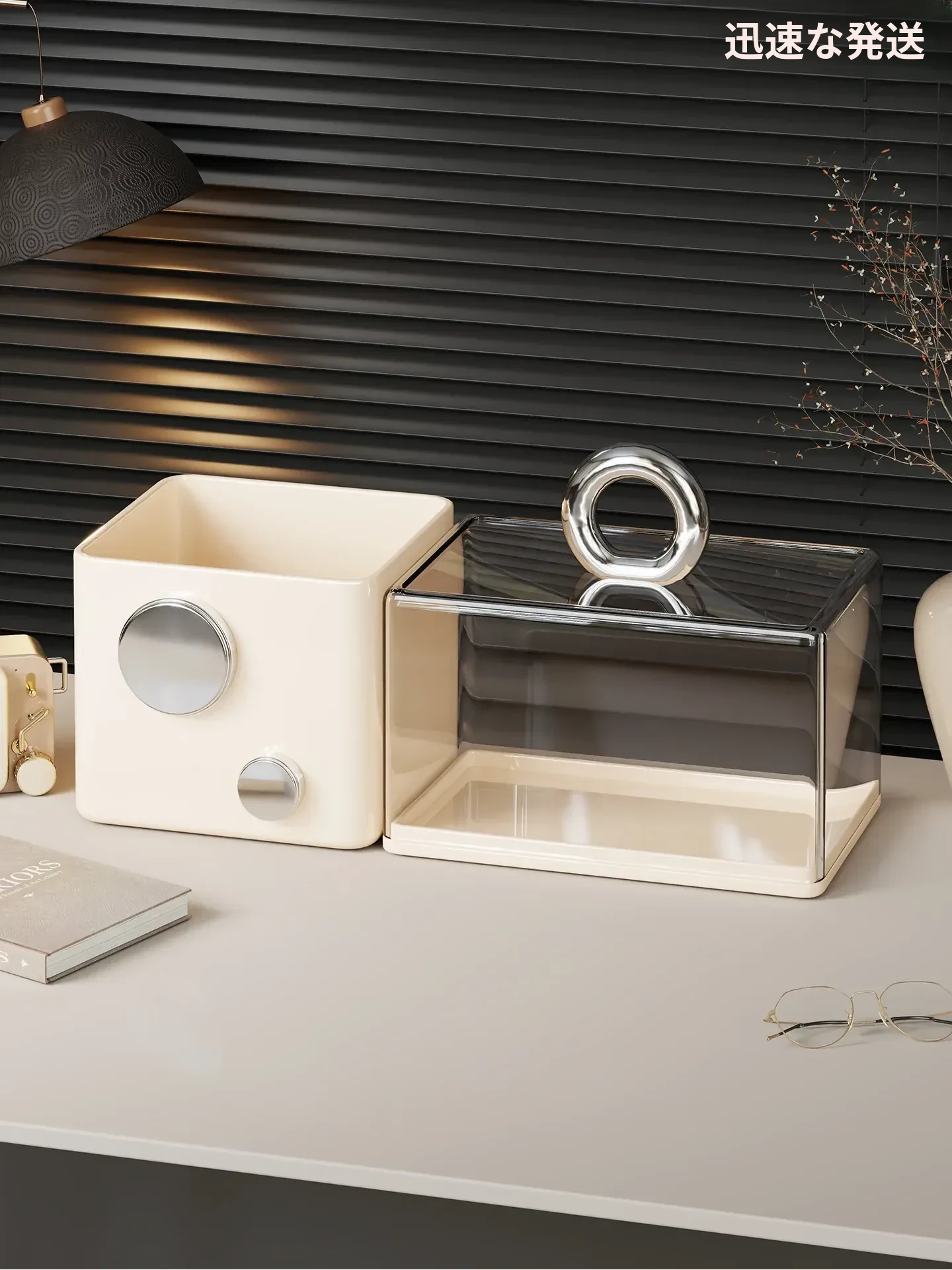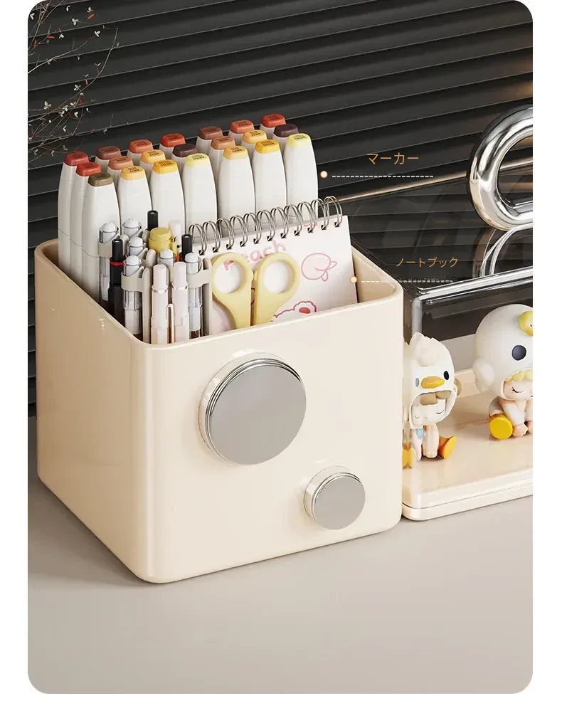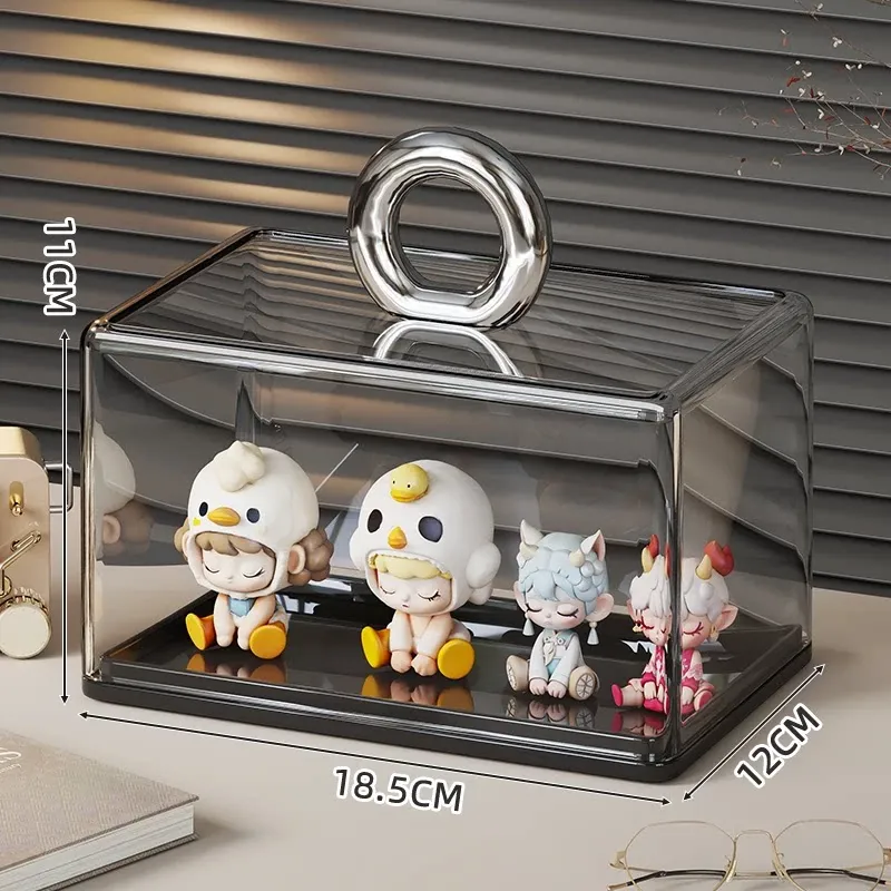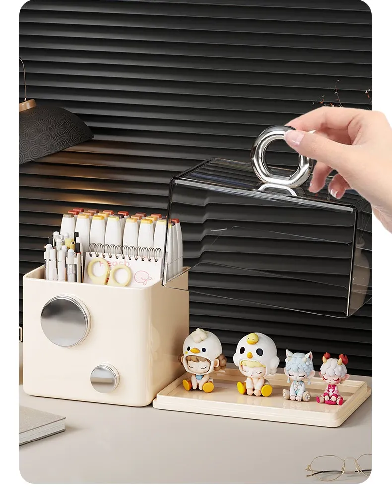 デスク用透明ブラインドボックス収納ボックス | ポップマートフィギュアを美しく展示 | 多機能デザインのクリエイティブペンホルダー | おしゃれなオフィスデスクに最適!
