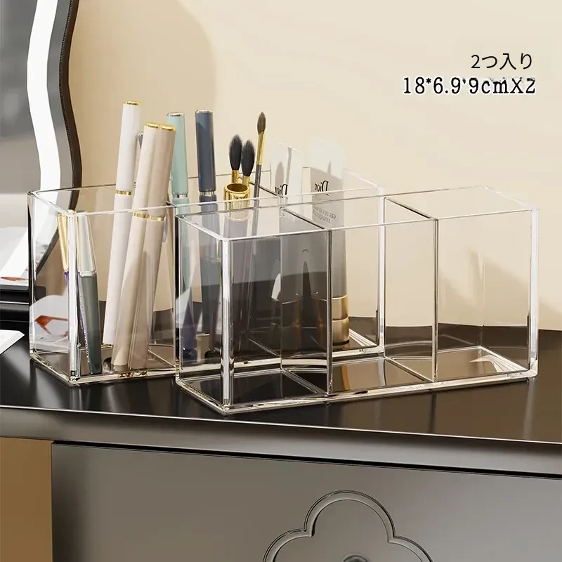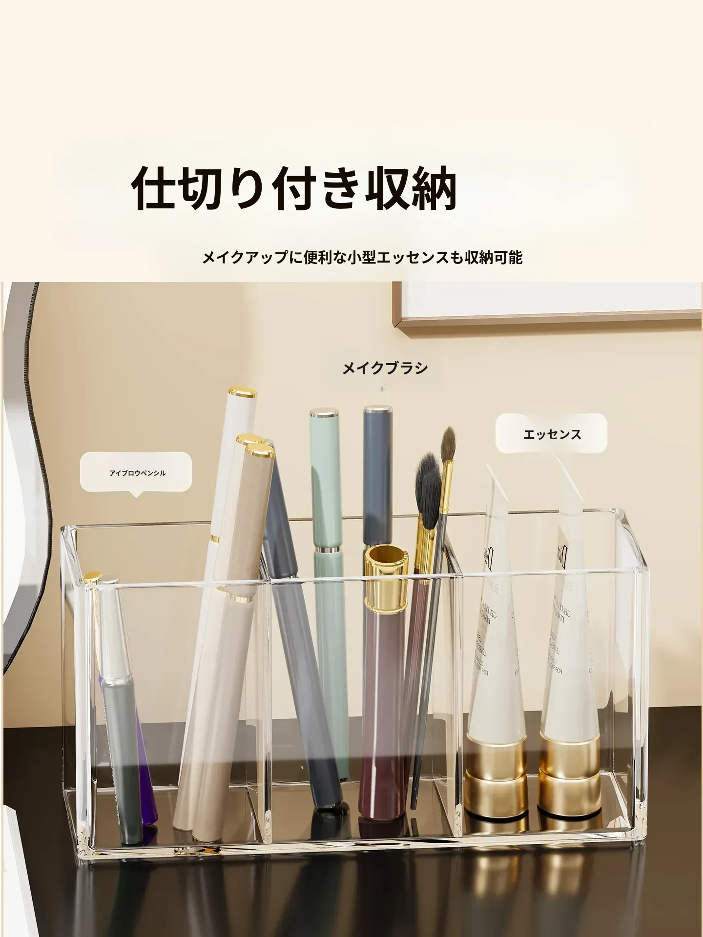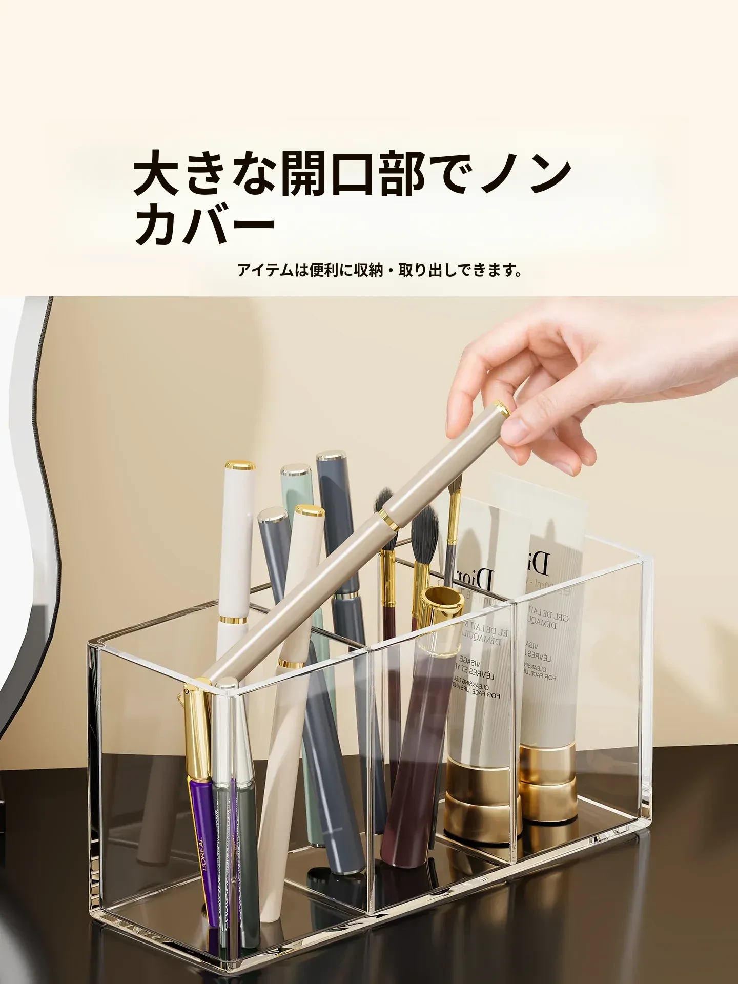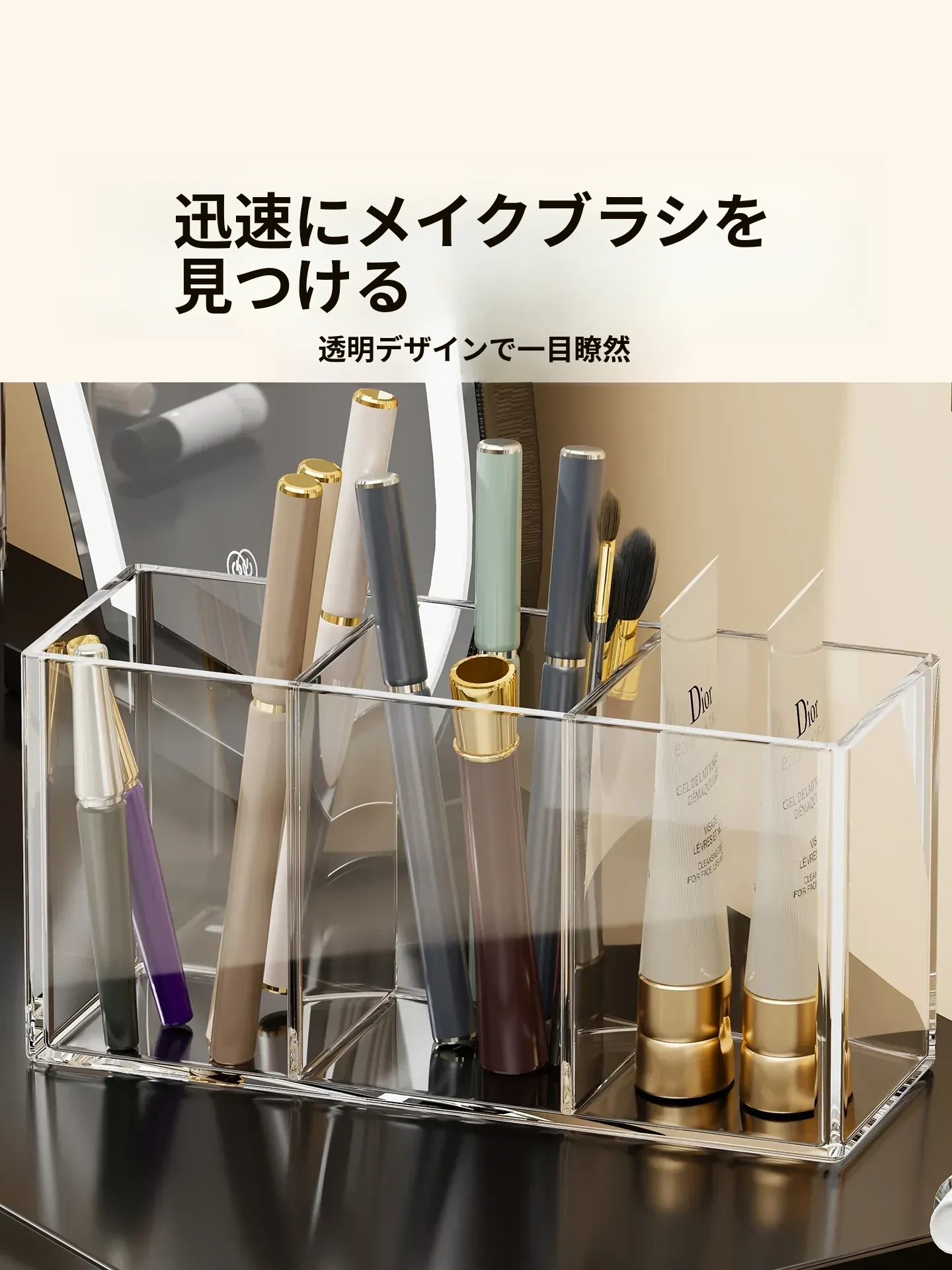 透明なメイクブラシスタンド - 口紅やアイブロウペンシルもすっきり収納!化粧品整理の必需品、鏡台にぴったりな仕分け収納ラック。おしゃれで便利なアイテムで、あなたのメイク環境をグレードアップ!
