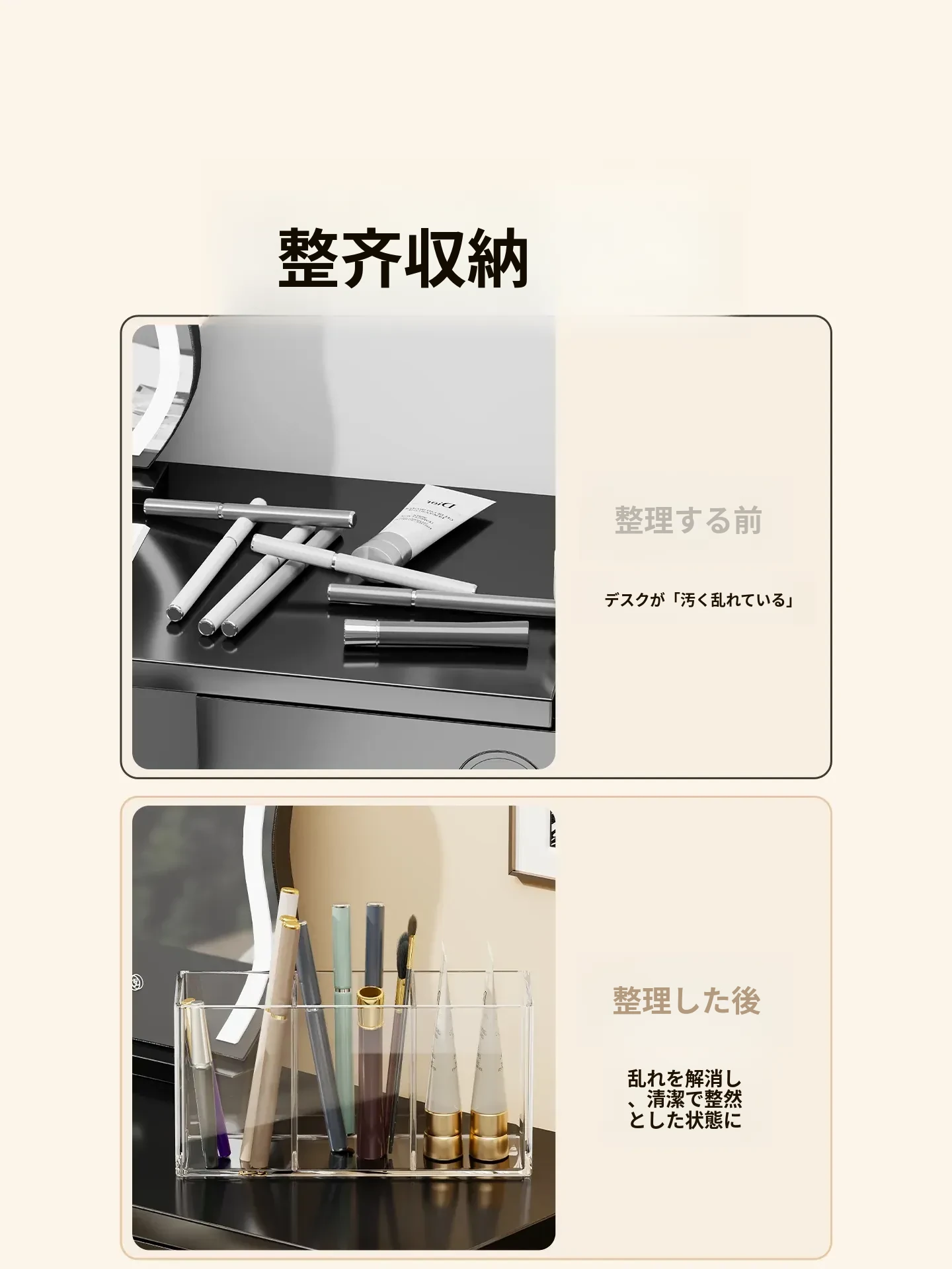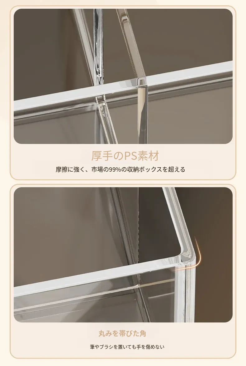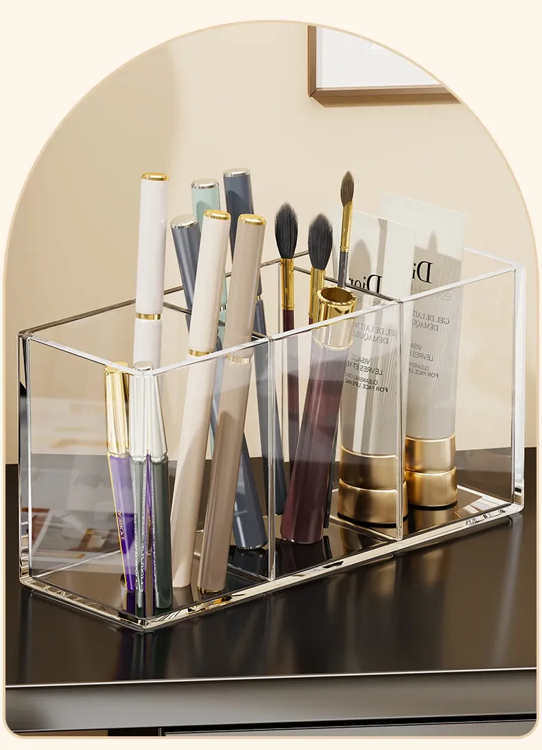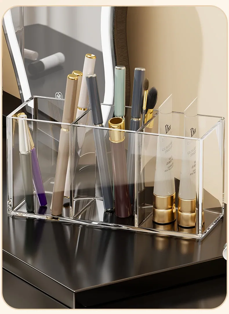 透明なメイクブラシスタンド - 口紅やアイブロウペンシルもすっきり収納!化粧品整理の必需品、鏡台にぴったりな仕分け収納ラック。おしゃれで便利なアイテムで、あなたのメイク環境をグレードアップ!