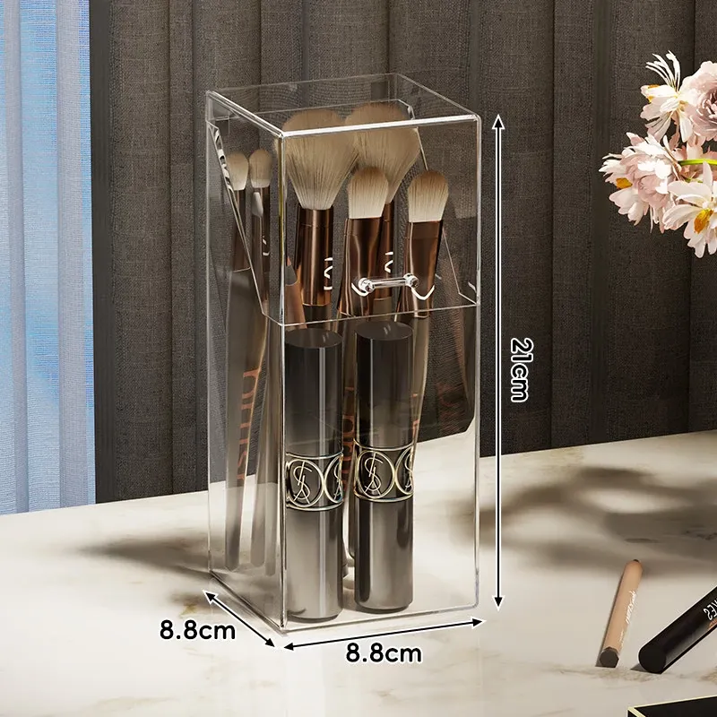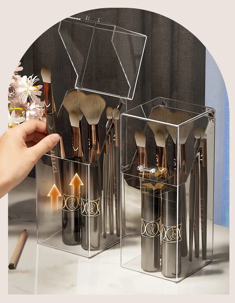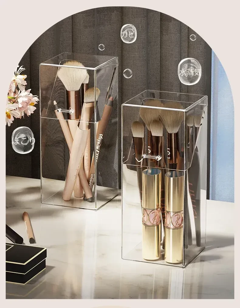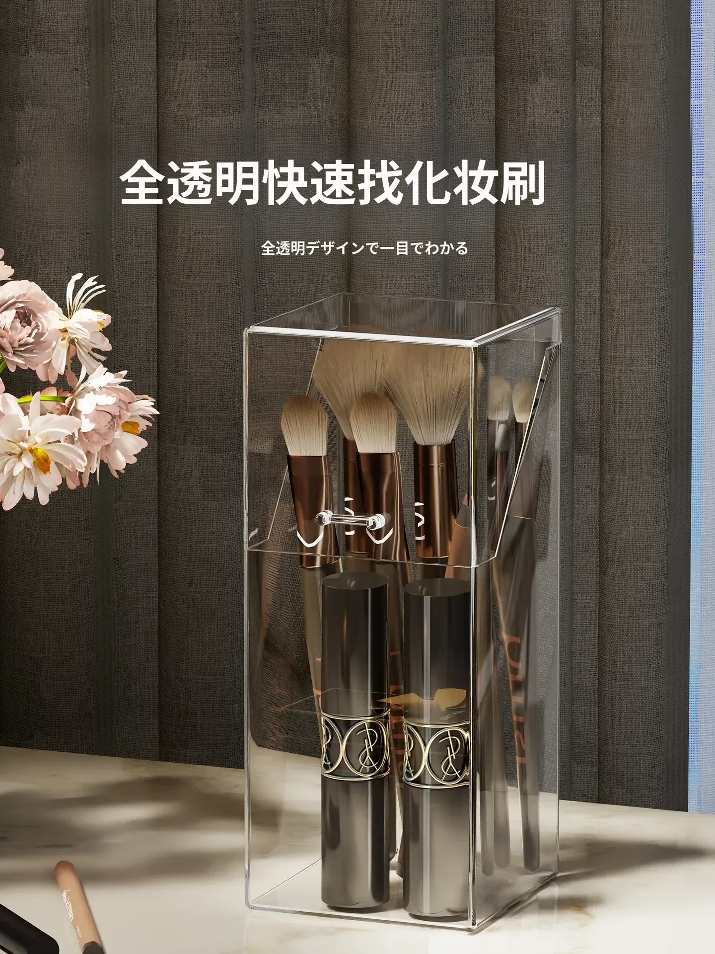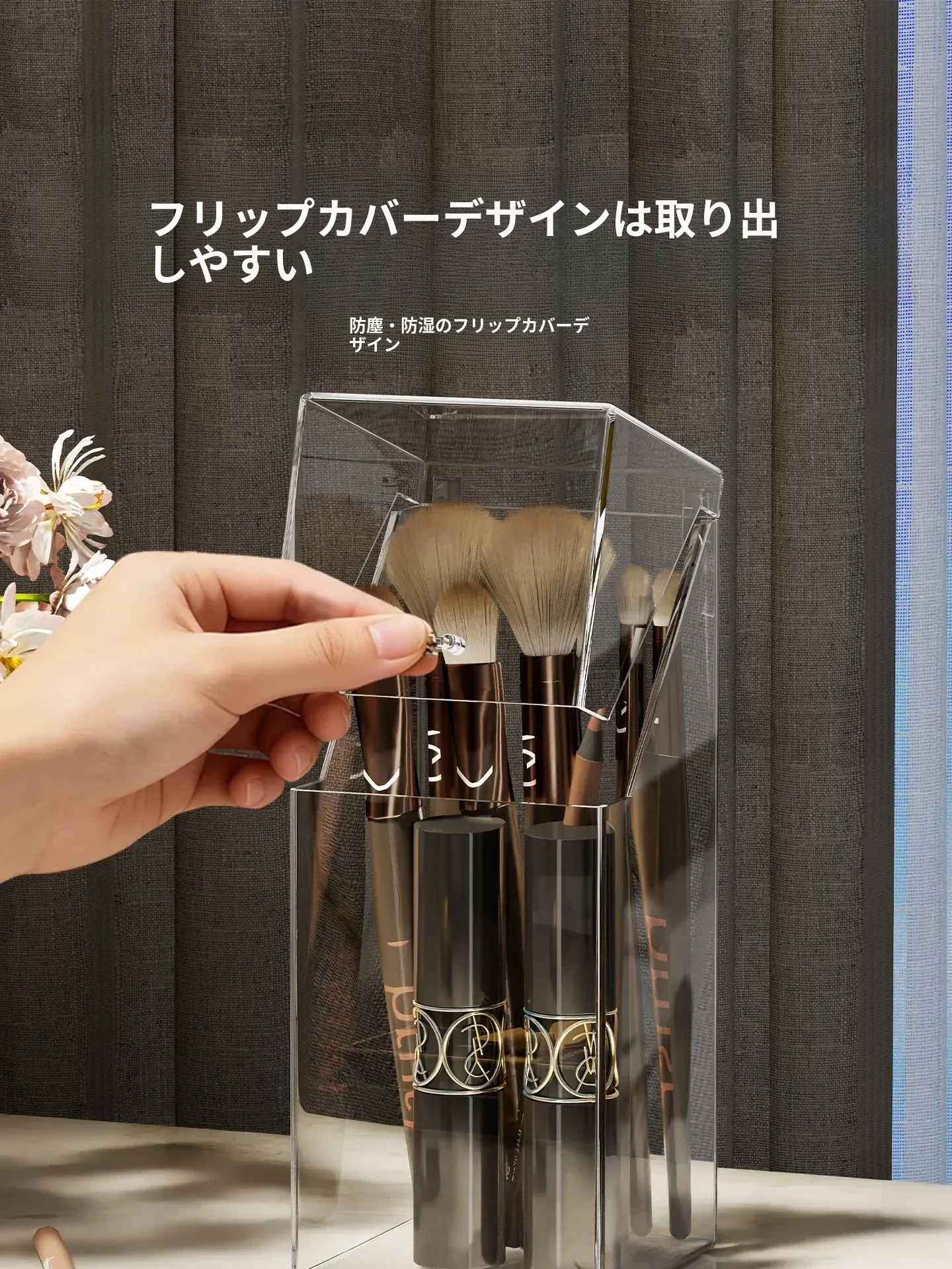 化粧ブラシ収納筒 - メイク台にぴったり!蓋付きのリップスティック収納ラック、透明でホコリ防止。アイシャドウブラシもスッキリ整理できる便利なペン立て!美しさを保つおしゃれアイテム。