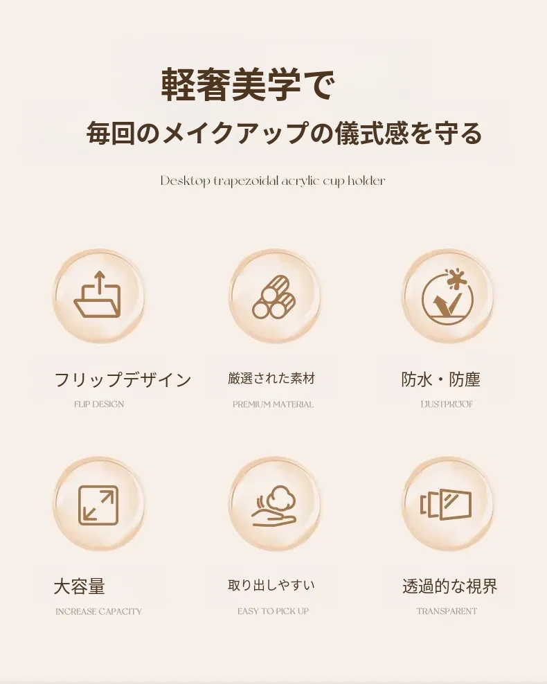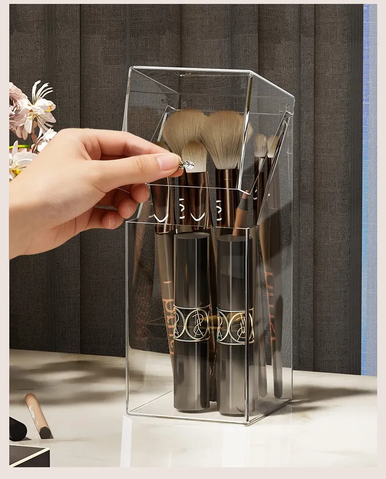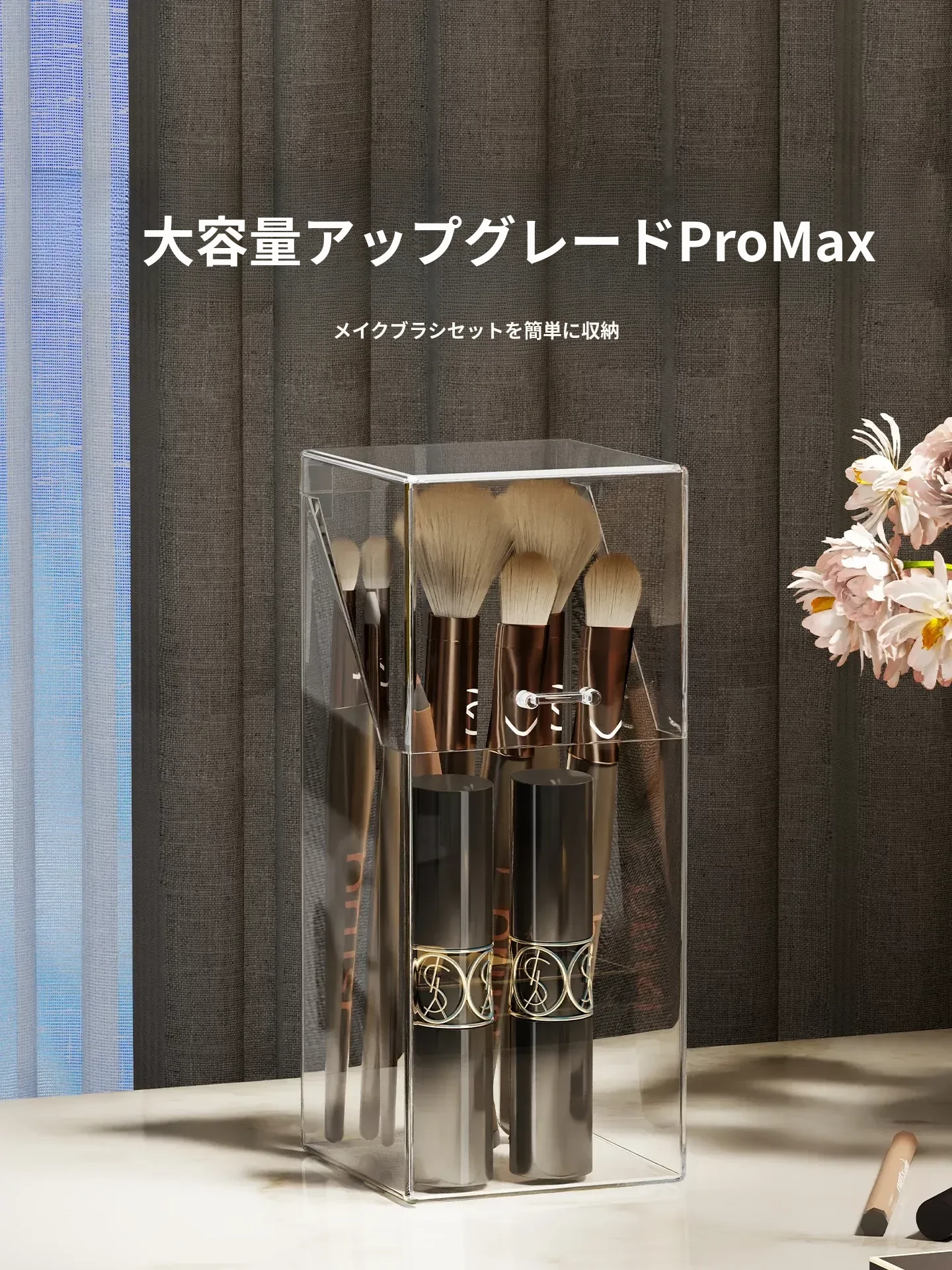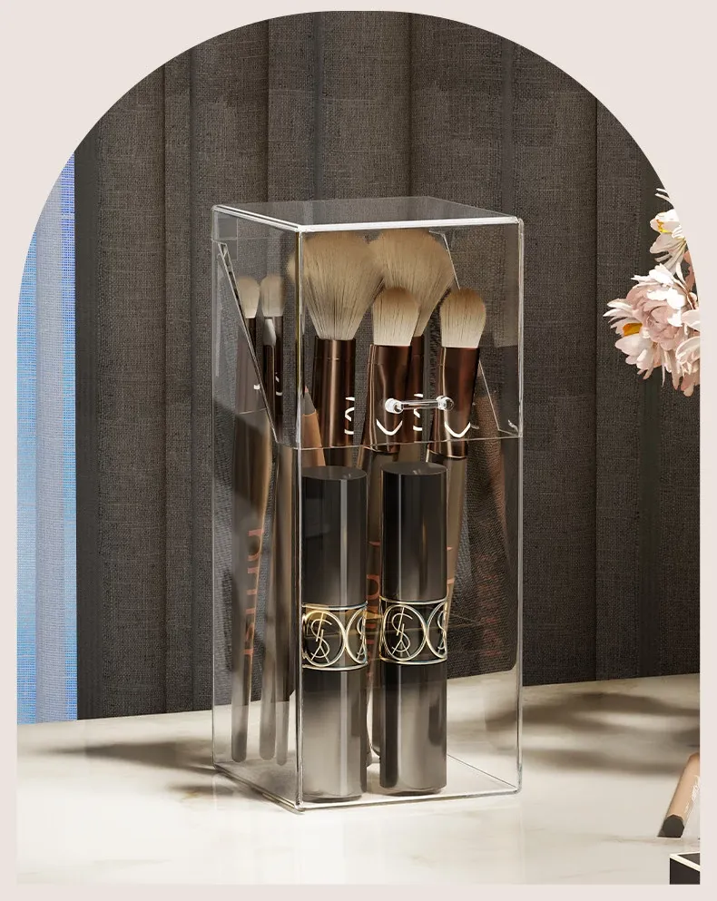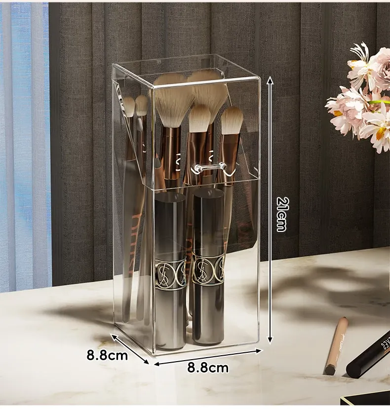 化粧ブラシ収納筒 - メイク台にぴったり!蓋付きのリップスティック収納ラック、透明でホコリ防止。アイシャドウブラシもスッキリ整理できる便利なペン立て!美しさを保つおしゃれアイテム。
