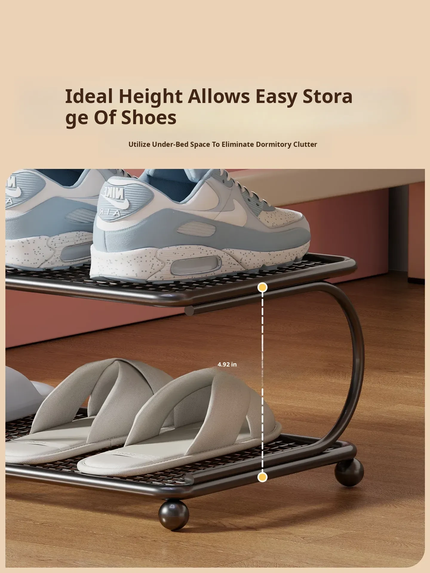 Under-Bed Shoe Rack for Dorm Rooms - Compact Shoe Organizer for College Students, Multi-Tiered Storage for Slippers and Footwear, Perfect for Small Spaces