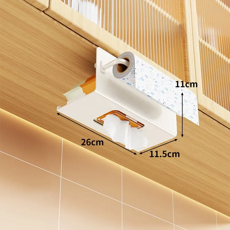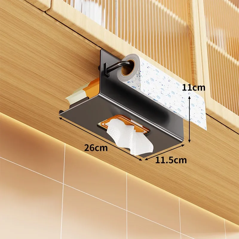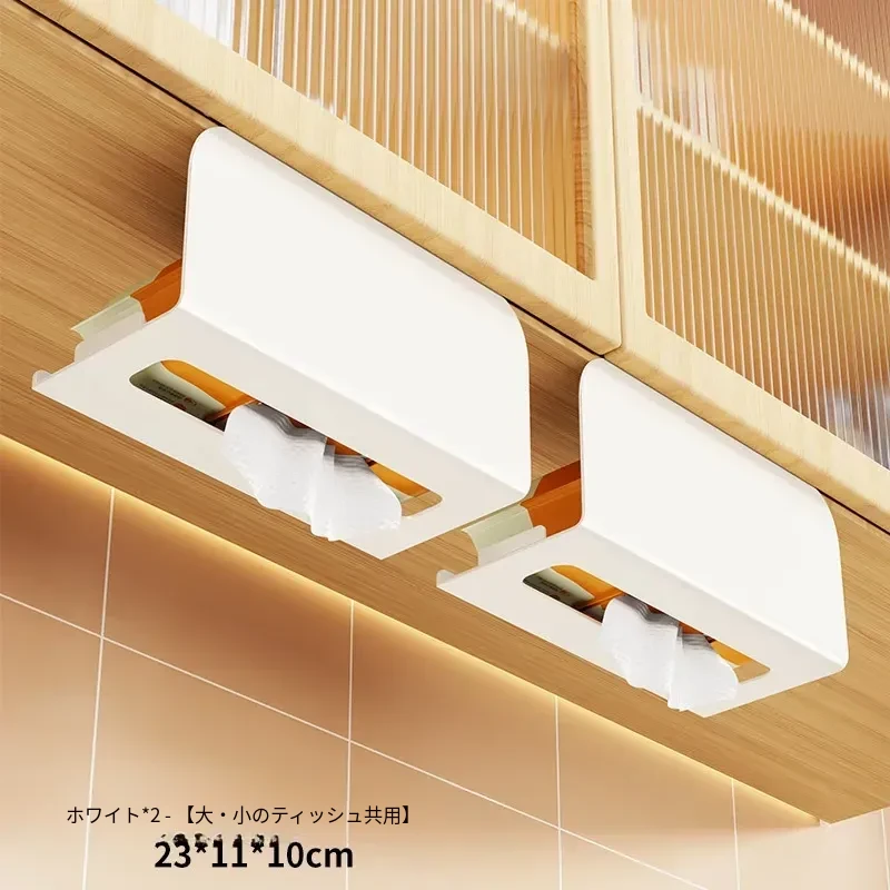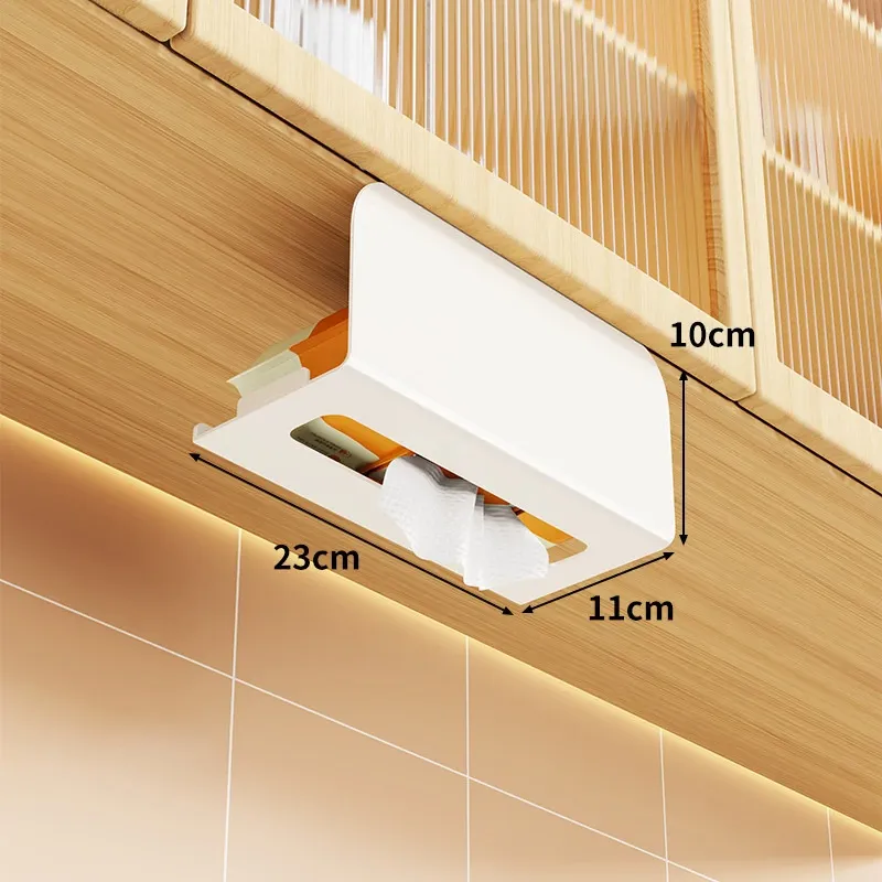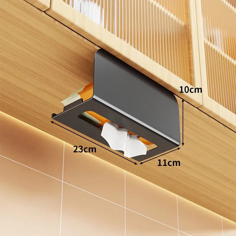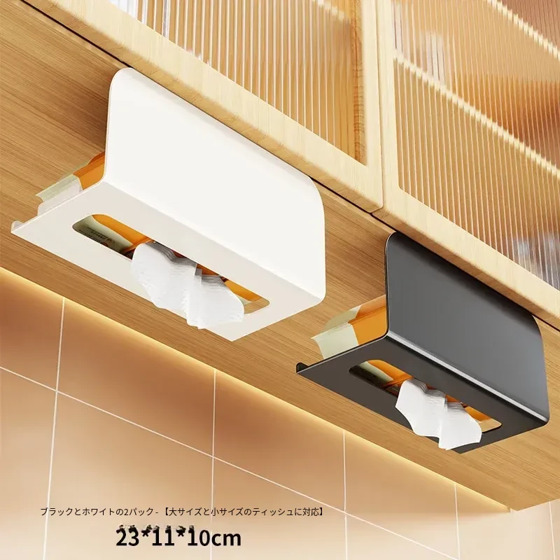穴あけ不要!キッチンやバスルームに最適な吊り下げ式ティッシュボックス - スタイリッシュな収納でスペースを有効活用!家庭用のキャビネット下にぴったりの便利アイテム。