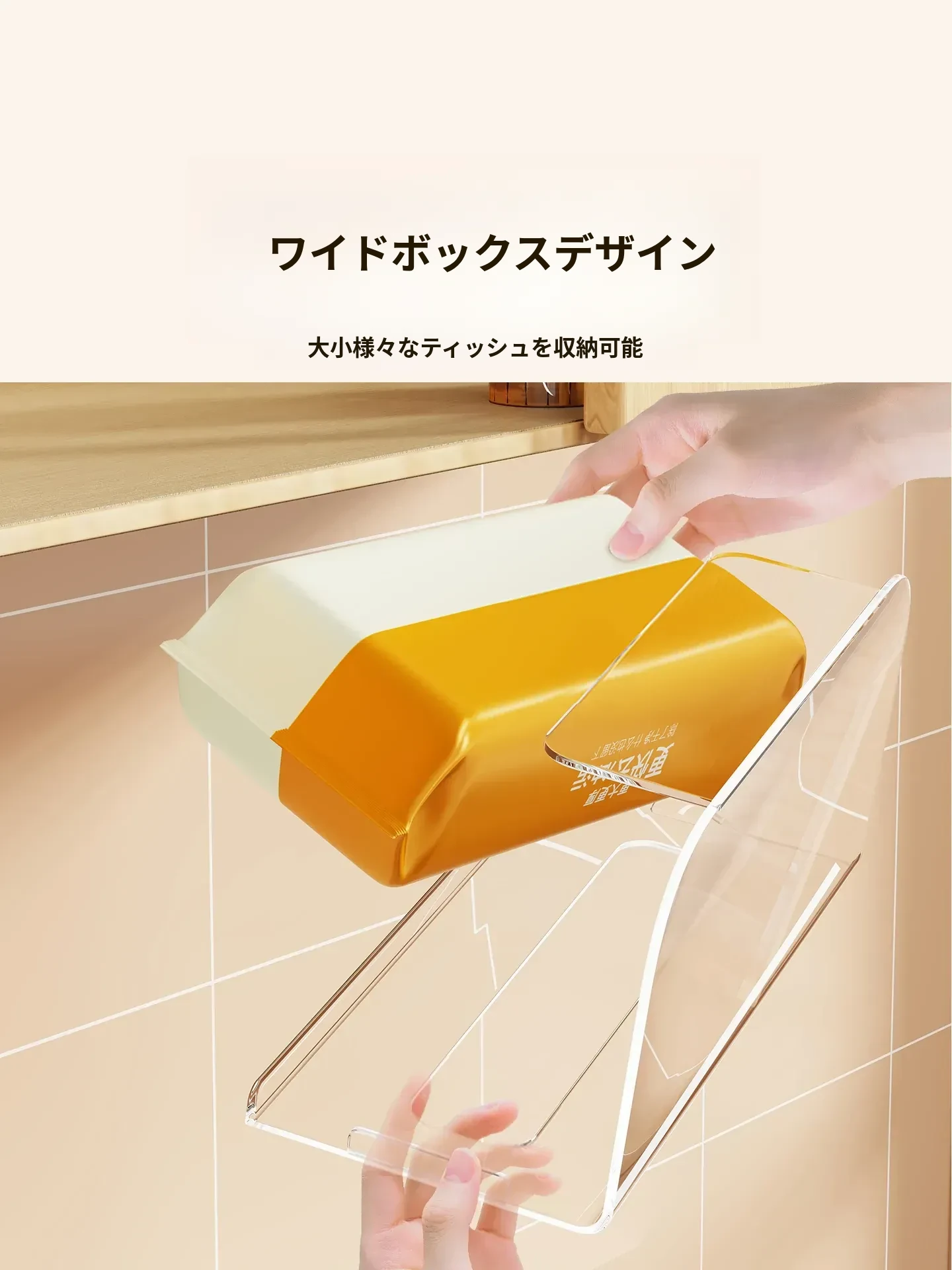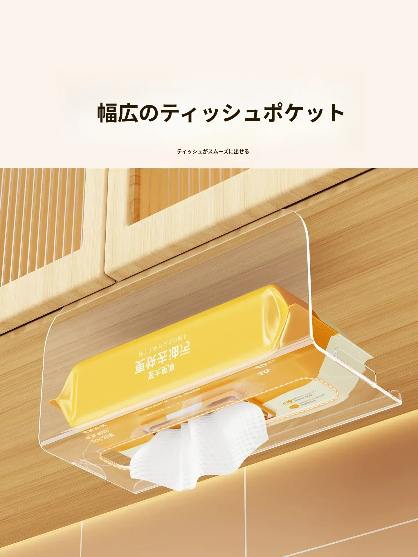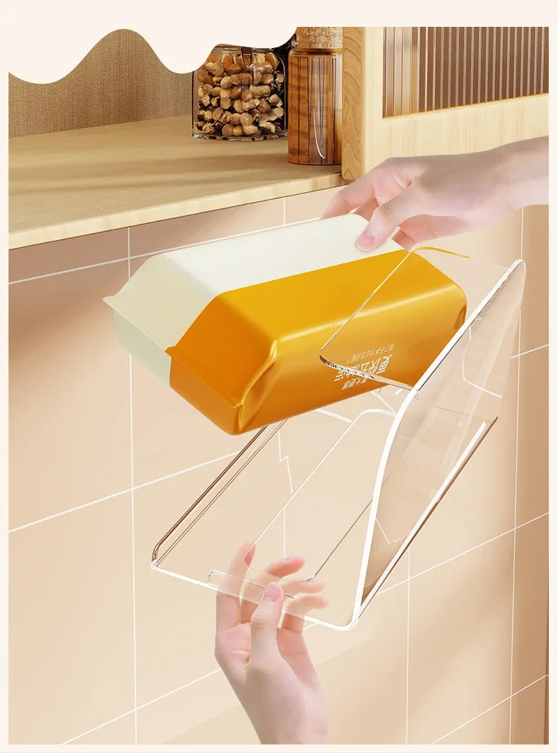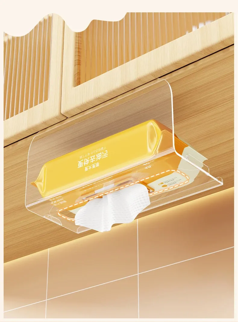 穴あけ不要!キッチンやバスルームに最適な吊り下げ式ティッシュボックス - スタイリッシュな収納でスペースを有効活用!家庭用のキャビネット下にぴったりの便利アイテム。