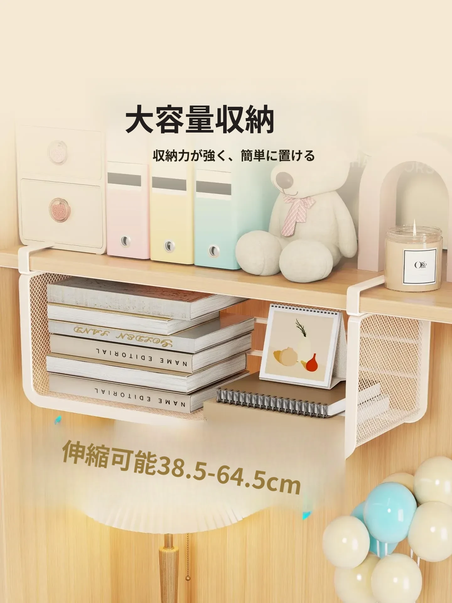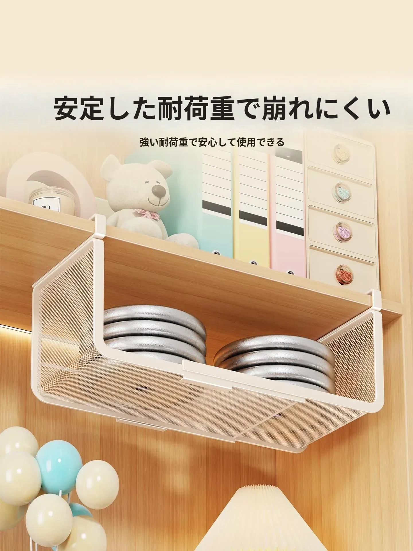 デスク下収納ラック!寮生活に最適な掛けバスケット!本棚や衣装ダンスの下にぴったり!階層分けできる便利なデスクトップハンガーで、すっきり収納を実現!整理整頓の必需品!