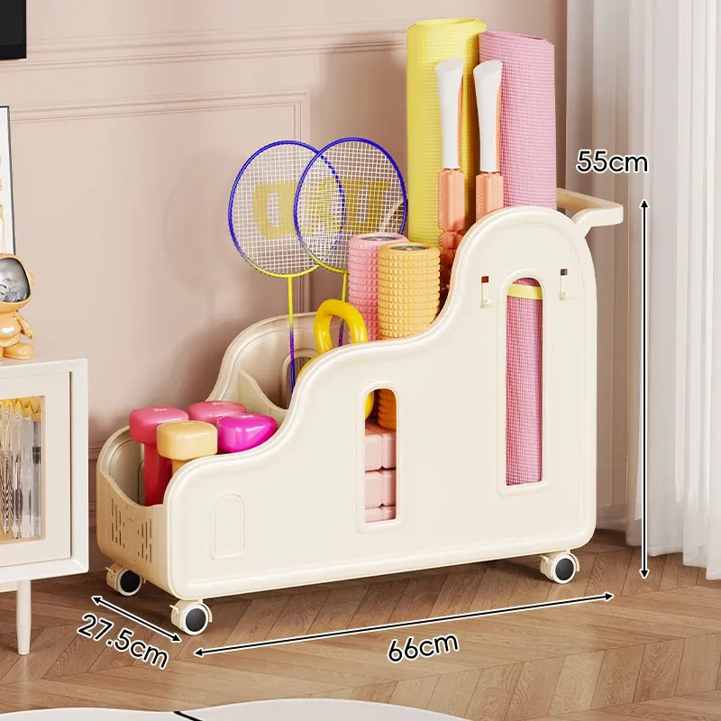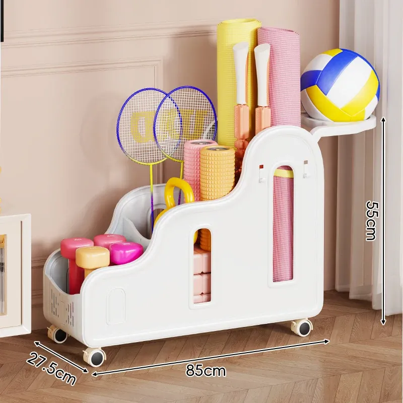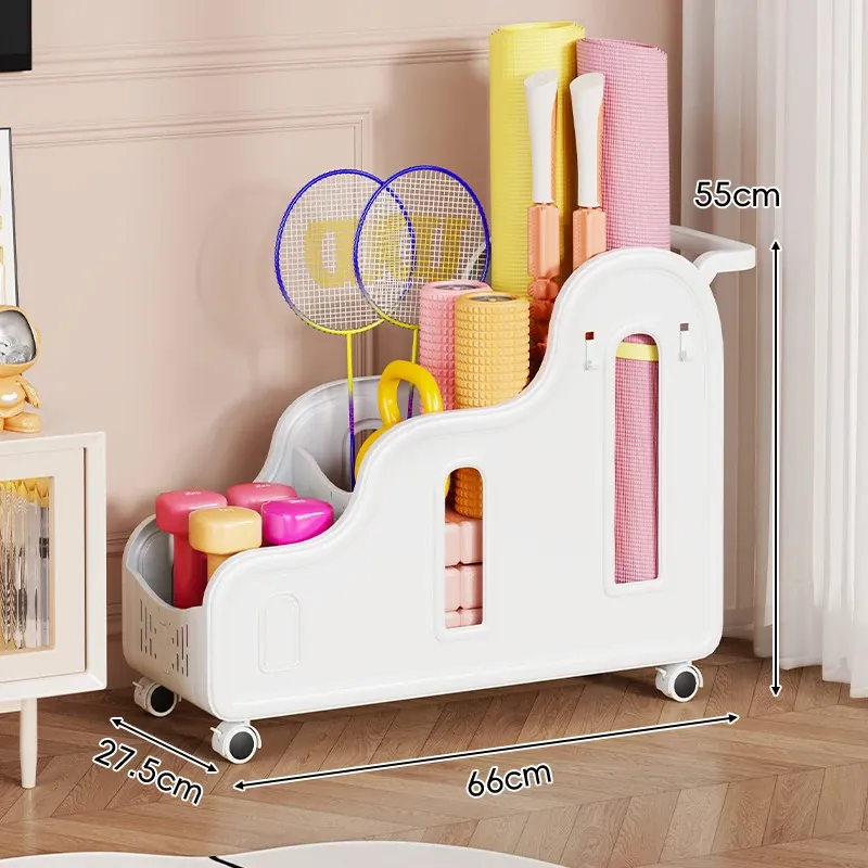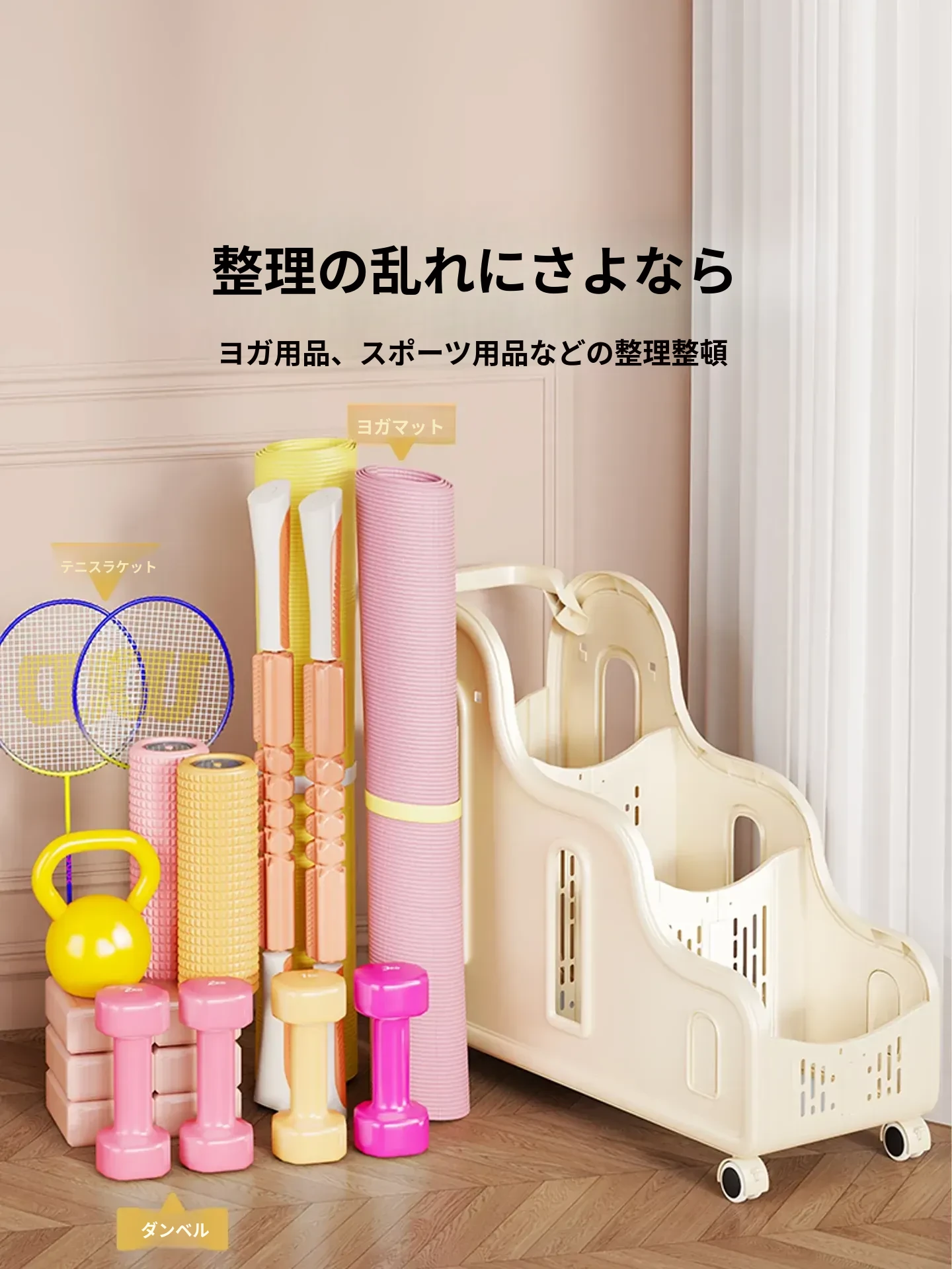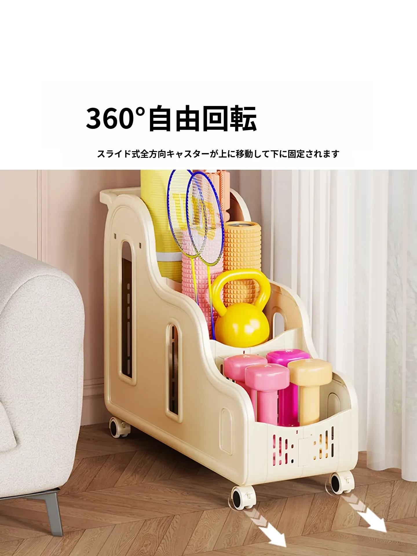 フィットネス器具収納便利カート 家庭用 移動式 ヨガマット収納バスケット バスケットボール運動道具収納ラックで、整理整頓も簡単!あなたのエクササイズライフをより快適に!