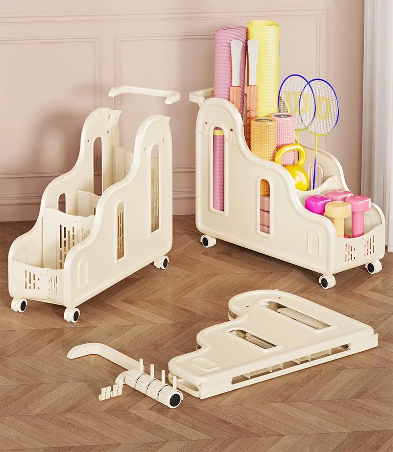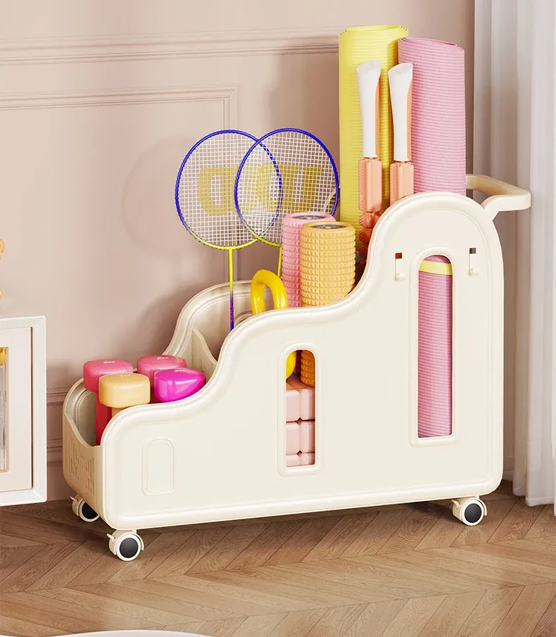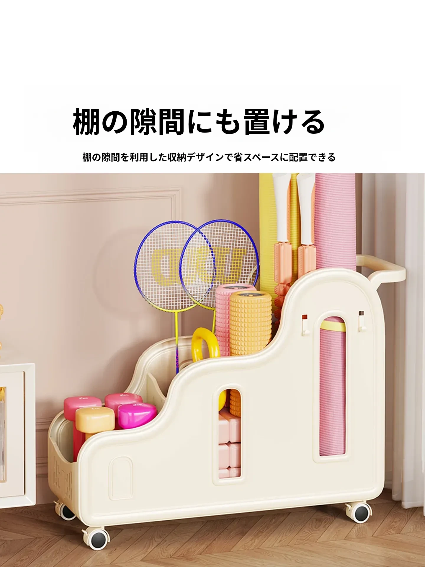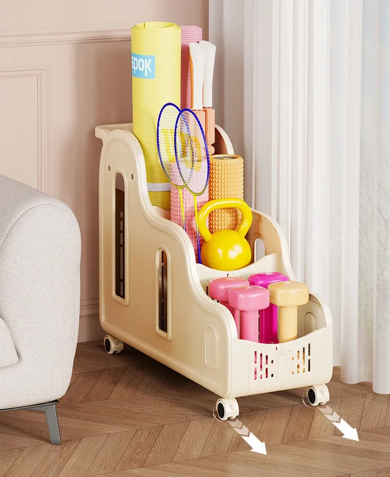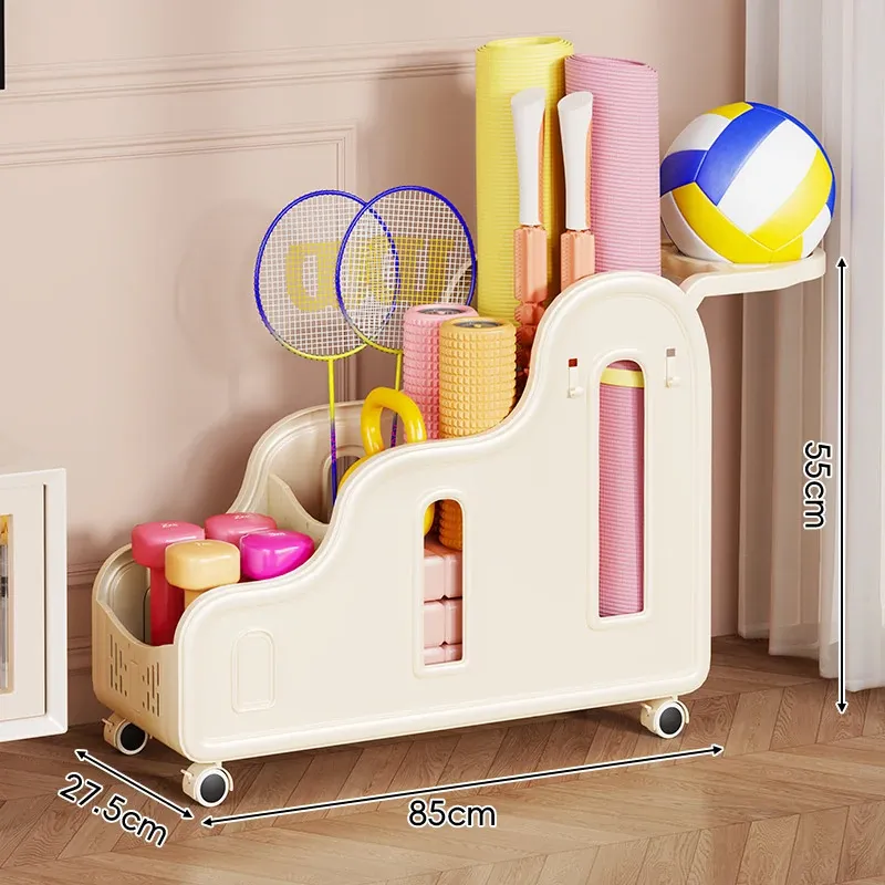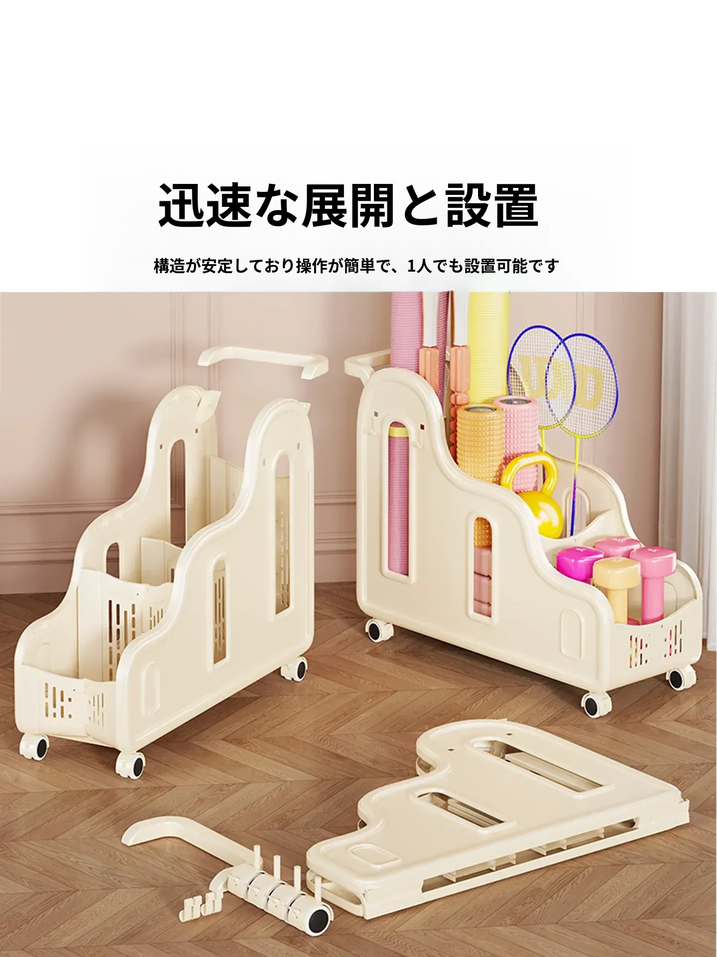 フィットネス器具収納便利カート 家庭用 移動式 ヨガマット収納バスケット バスケットボール運動道具収納ラックで、整理整頓も簡単!あなたのエクササイズライフをより快適に!