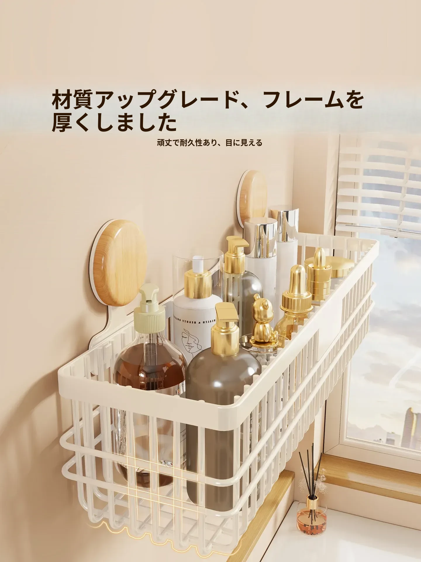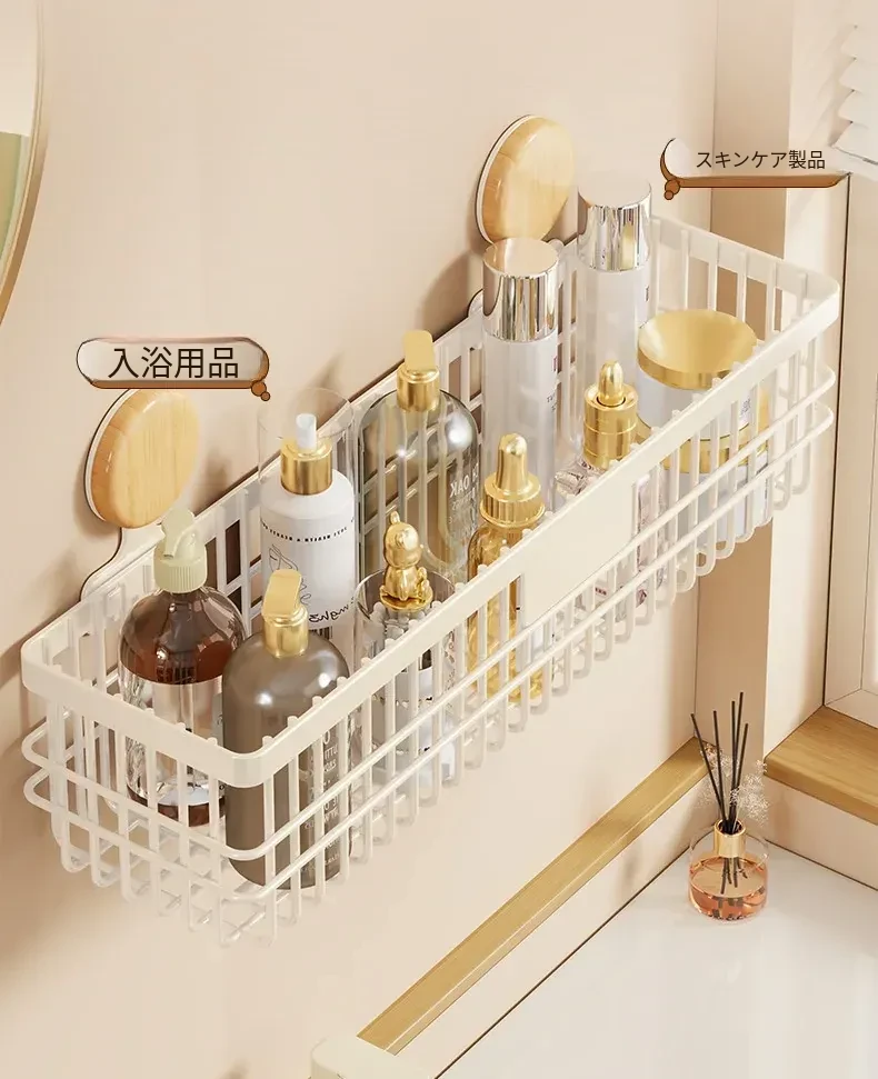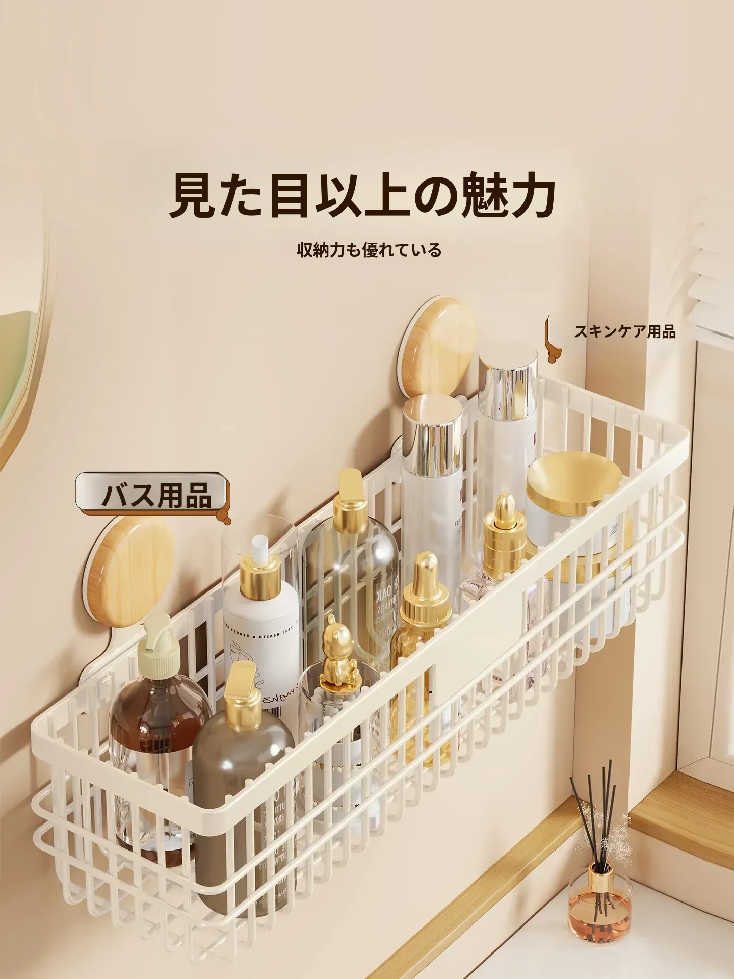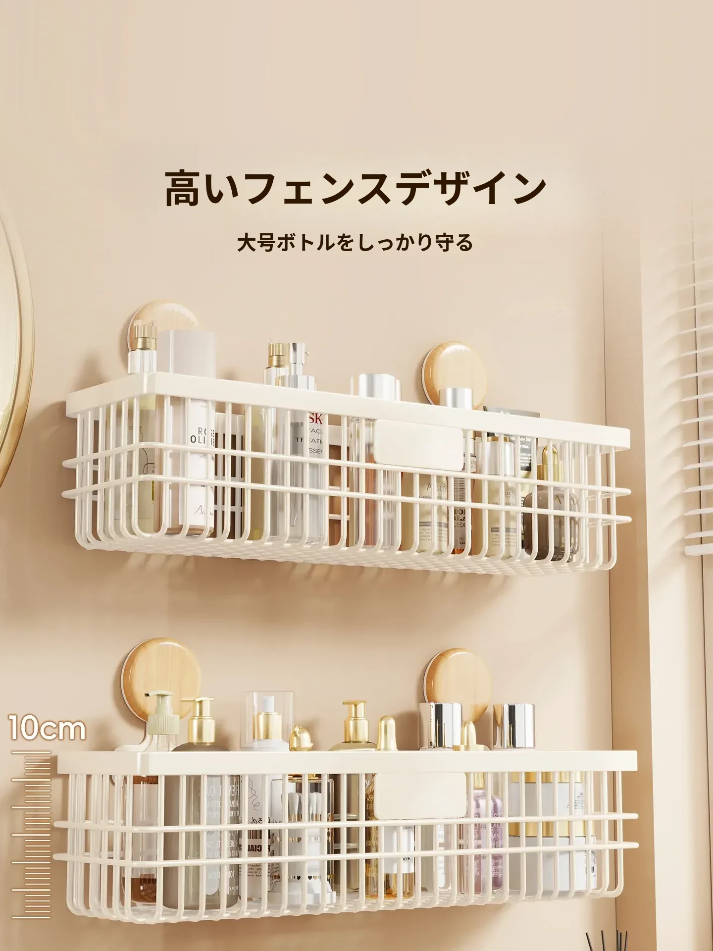 バスルーム壁掛け収納ラック - おしゃれで便利なトイレ用無傷取り付け収納!洗面用品をスマートに整理整頓し、スッキリした空間を実現します。