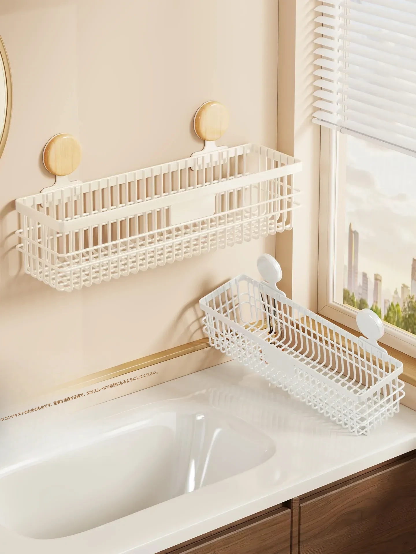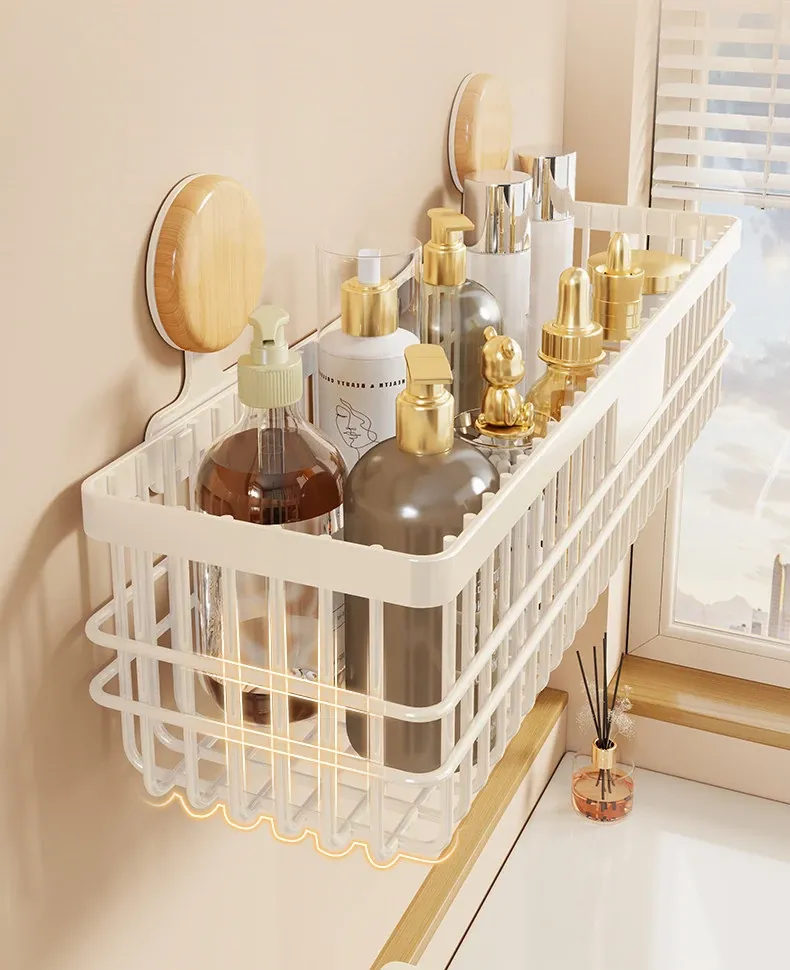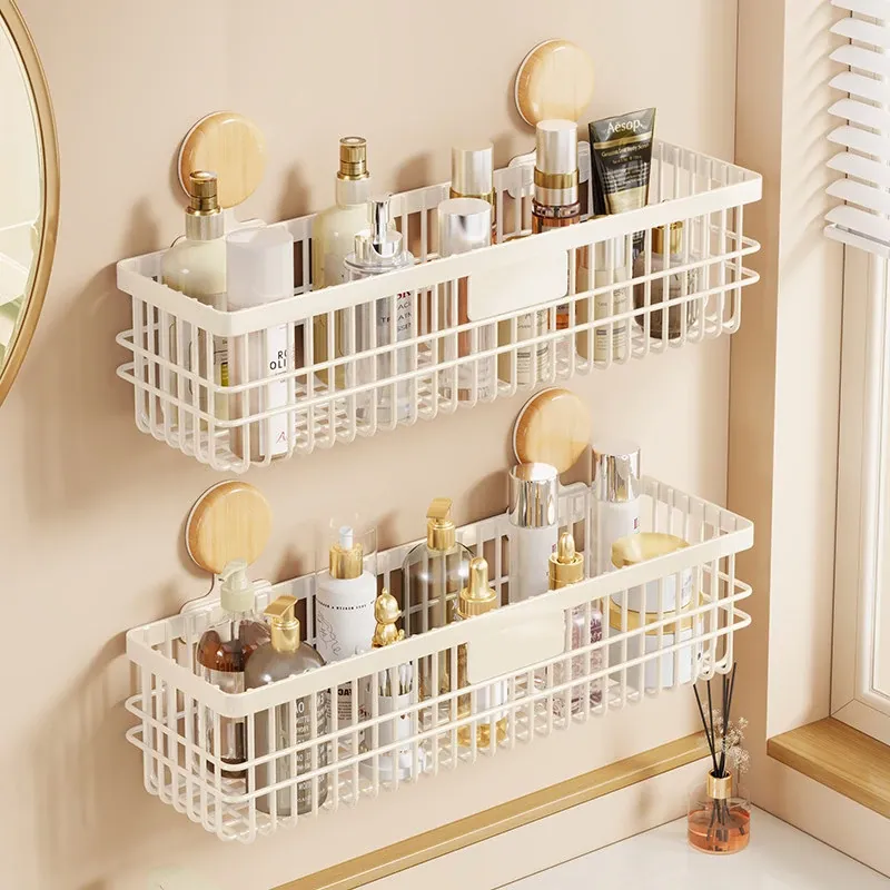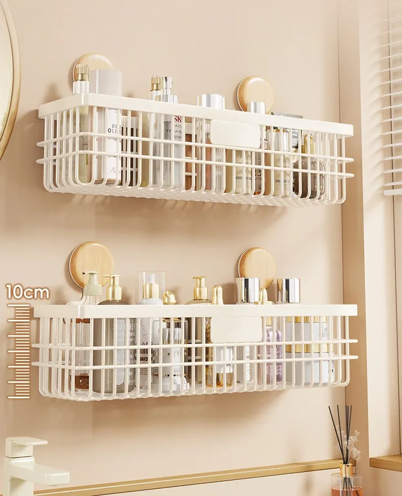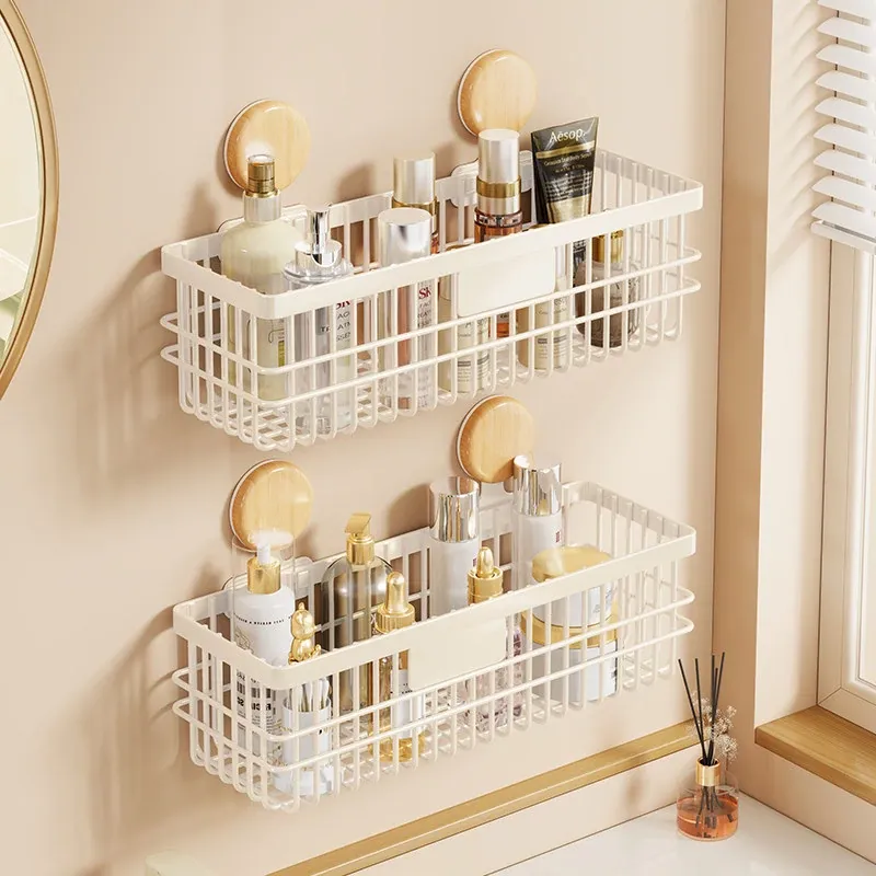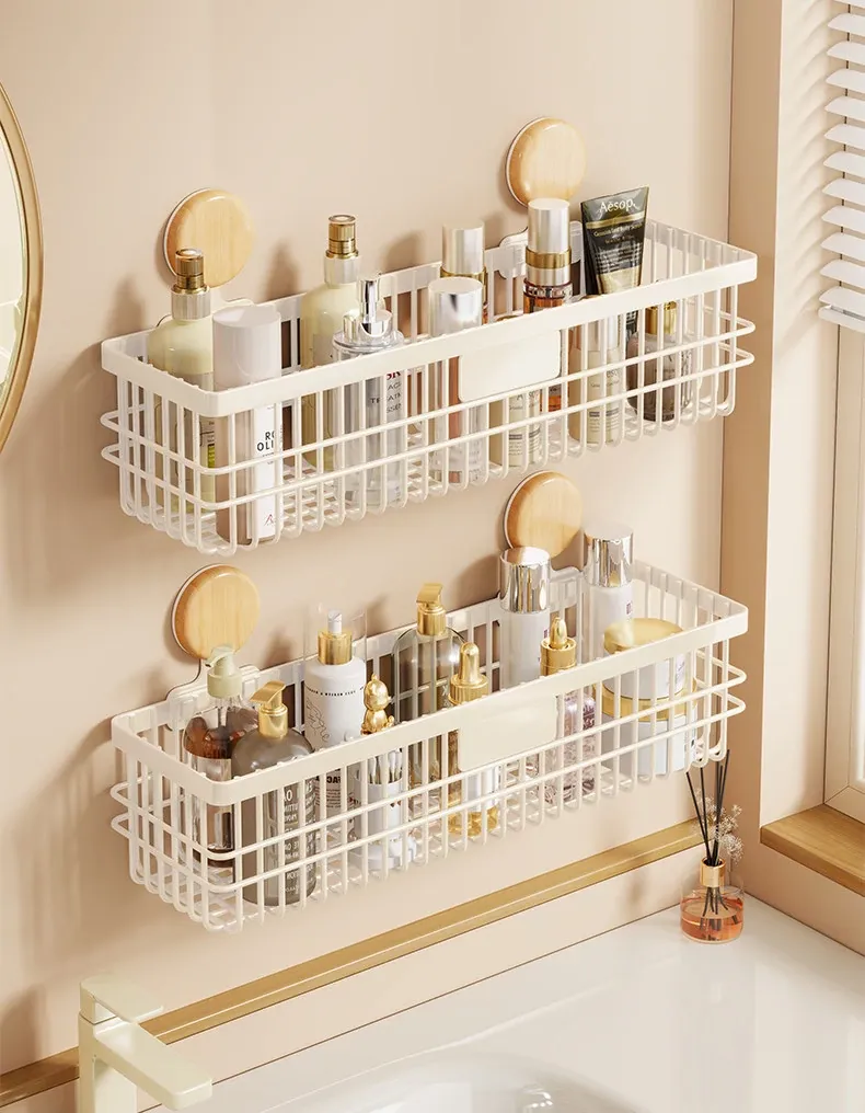 バスルーム壁掛け収納ラック - おしゃれで便利なトイレ用無傷取り付け収納!洗面用品をスマートに整理整頓し、スッキリした空間を実現します。