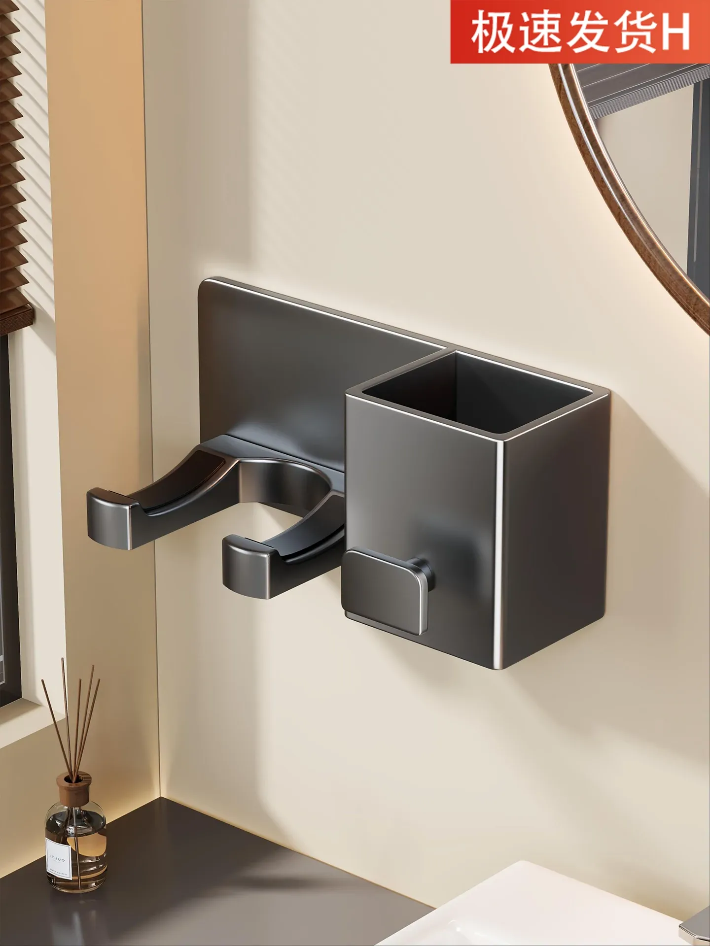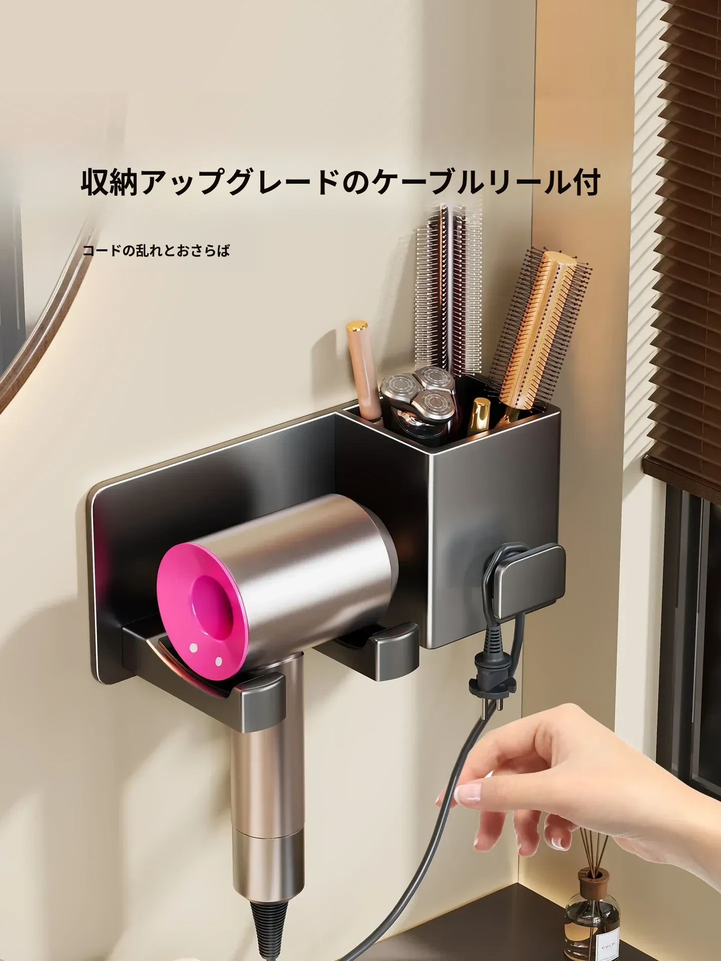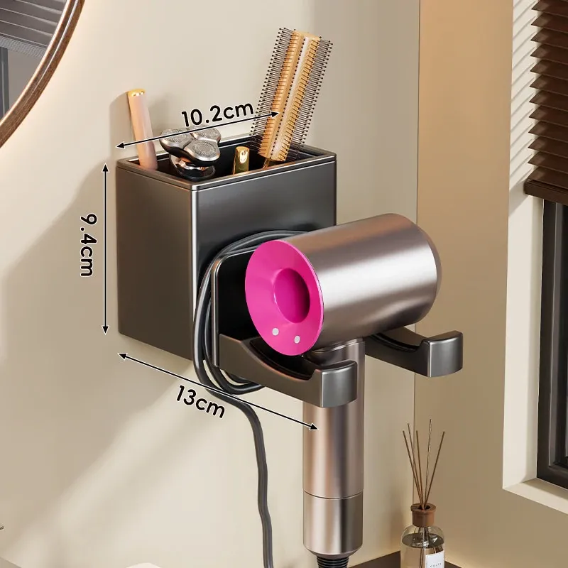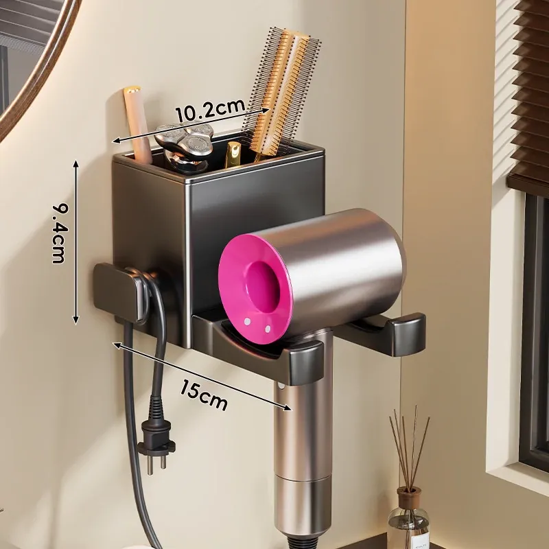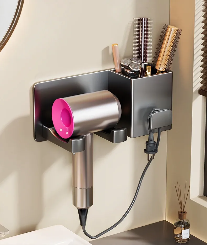 【❤人気商品おすすめ❤】ガンメタルグレー-ヘアドライヤーラック+収納スペース付き