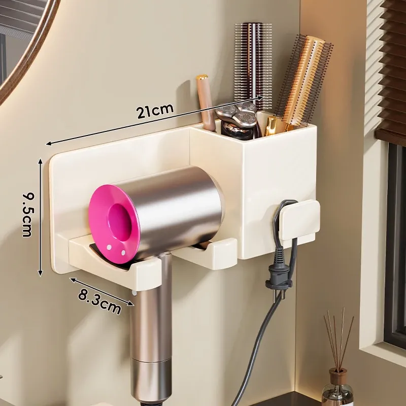 バスルームに最適!ドライヤー収納ラック - 壁掛け式で穴を開けずに取り付け可能!スッキリ整理できる電動ドライヤースタンド。おしゃれで便利な収納アイテムで、あなたのバスルームをもっとスマートに!