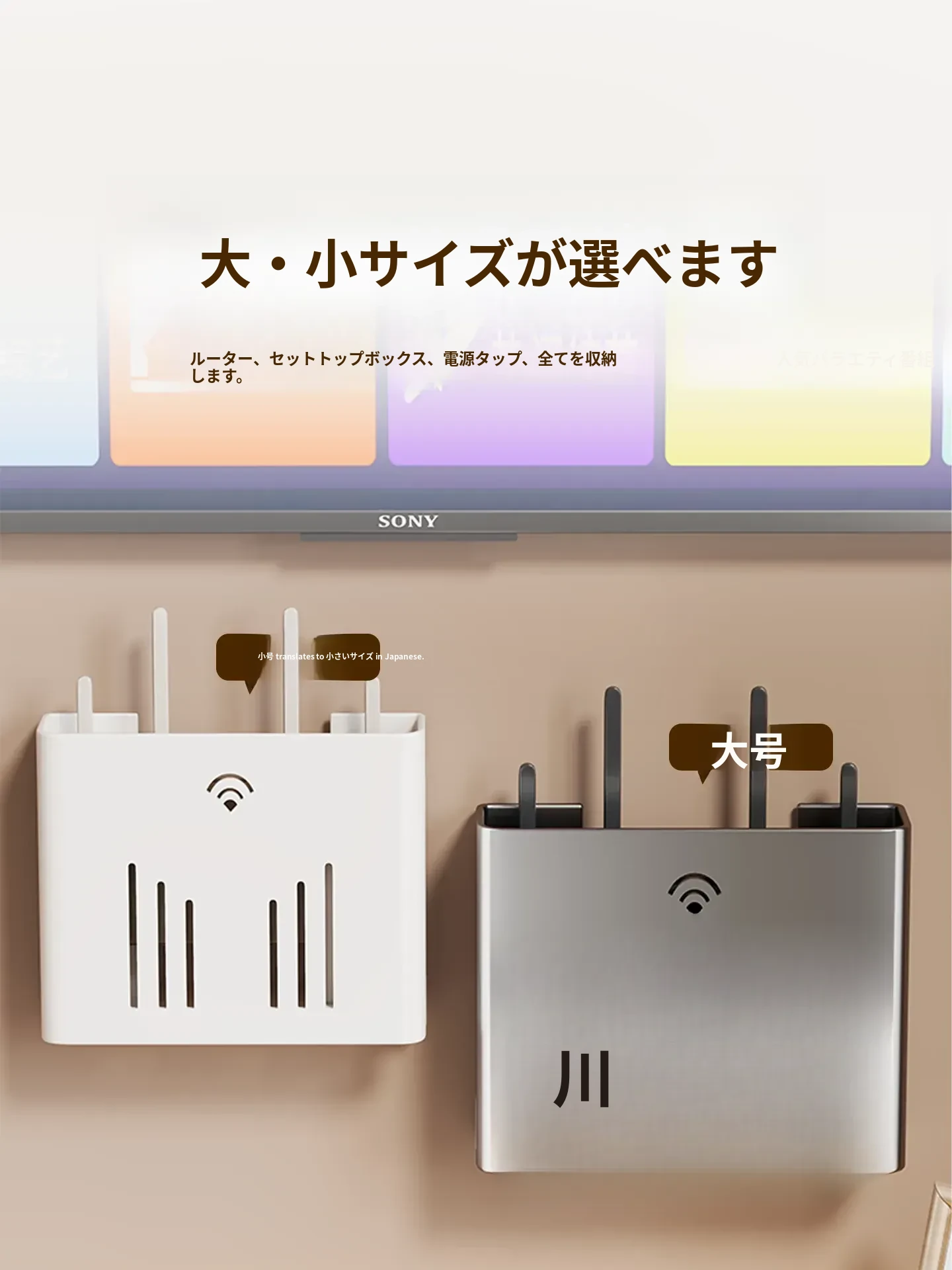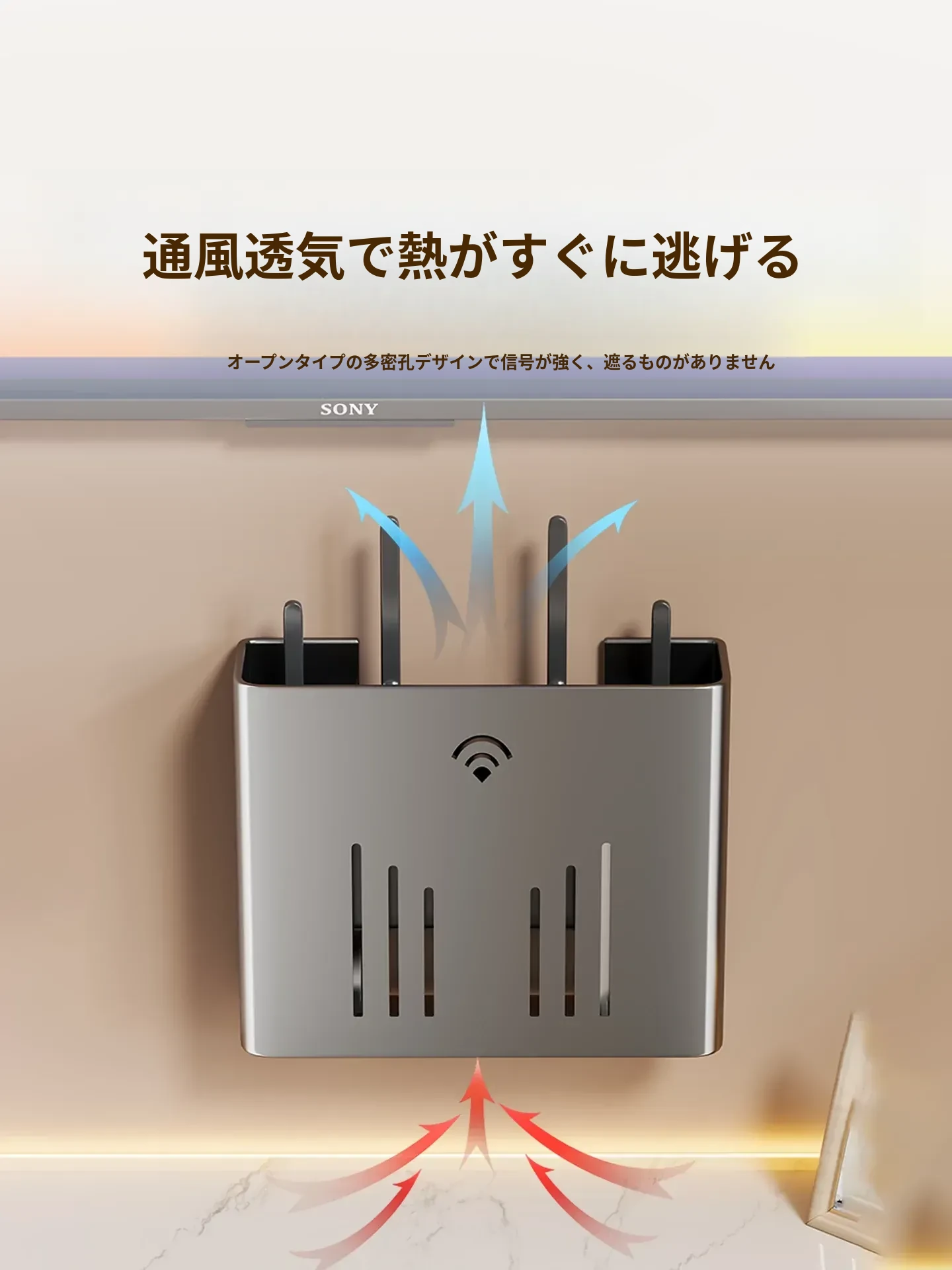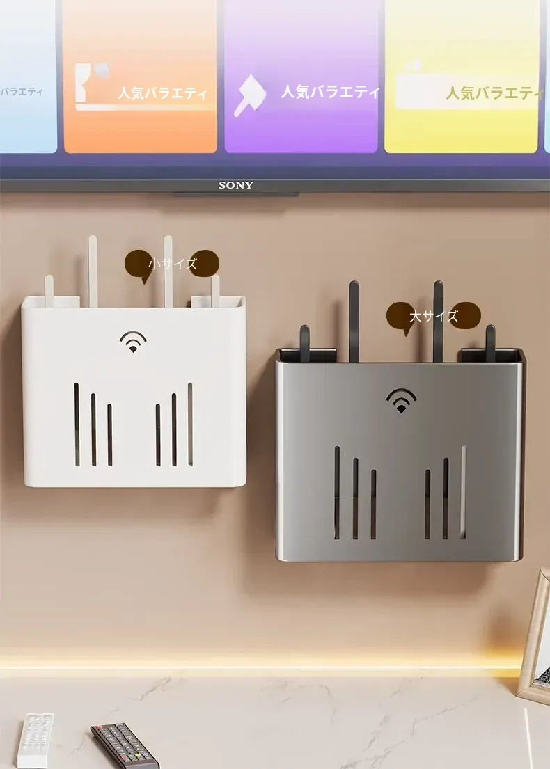 壁掛けWiFi収納ボックス - リモコンやルーターをスッキリ整理!穴あけ不要で簡単取り付け、限られたスペースを有効活用する便利な収納ラック!