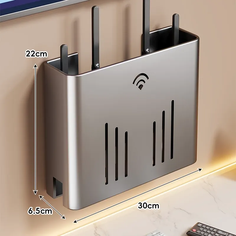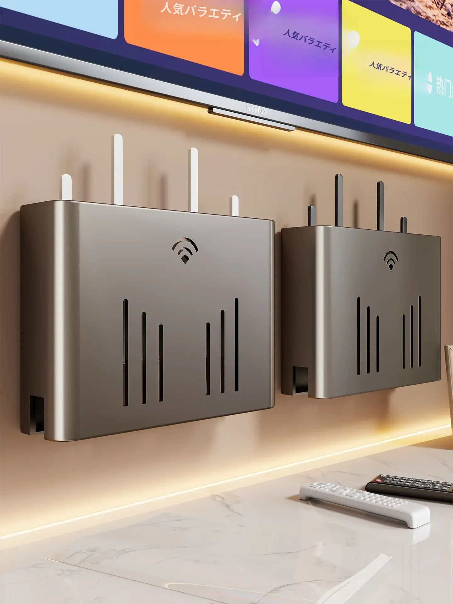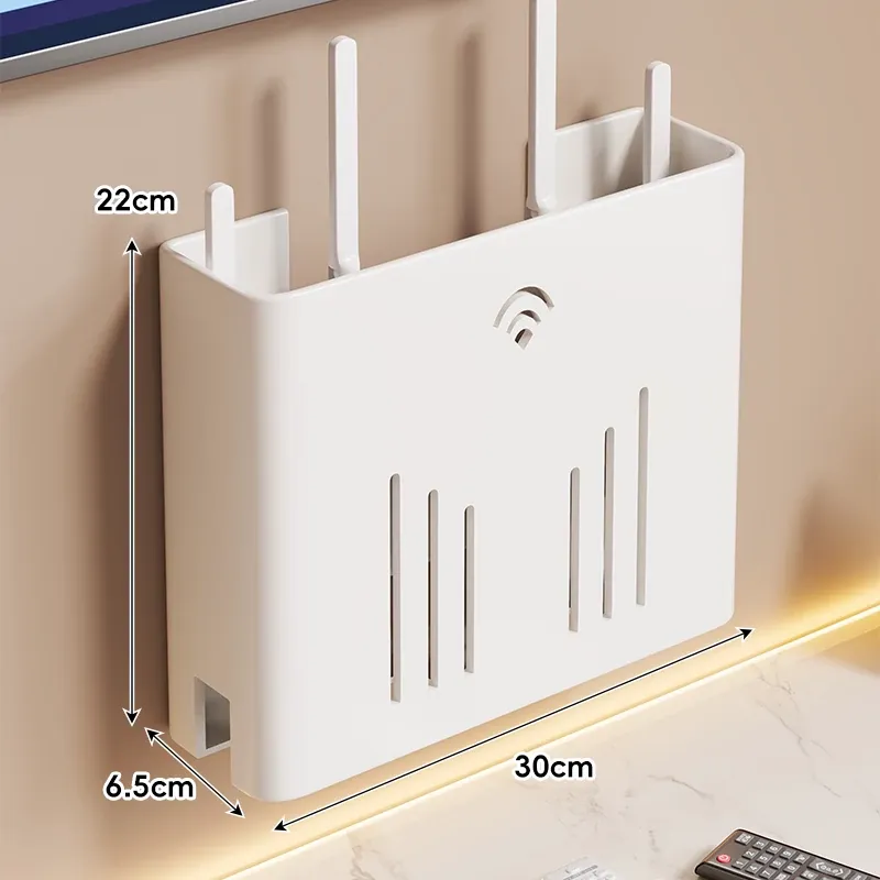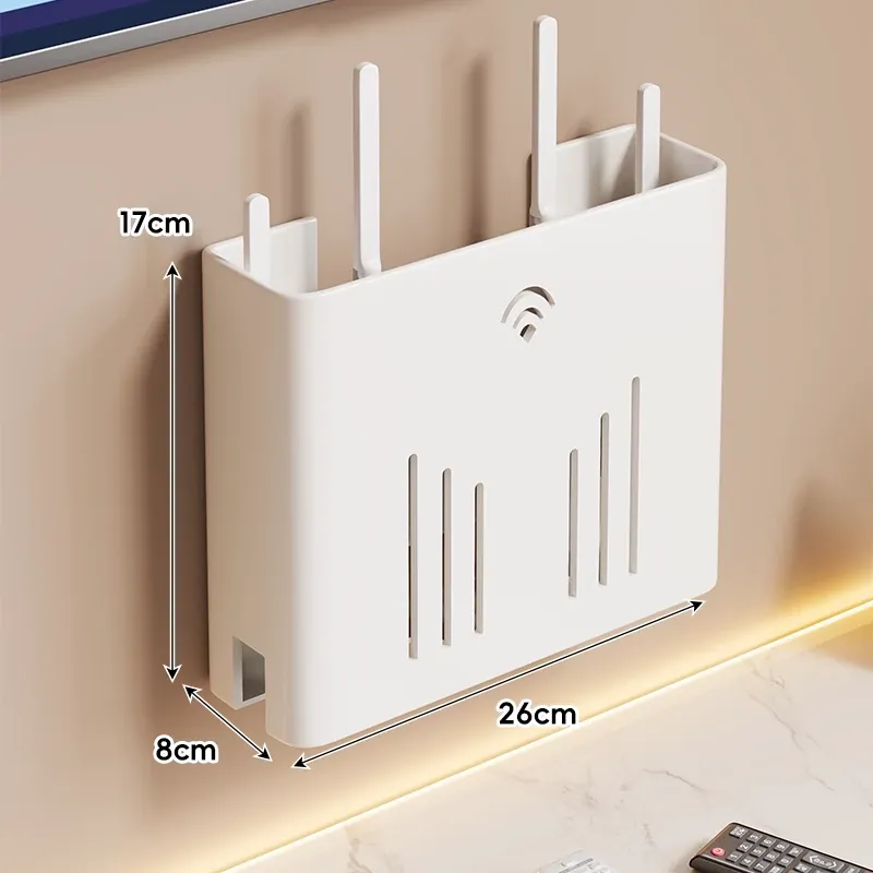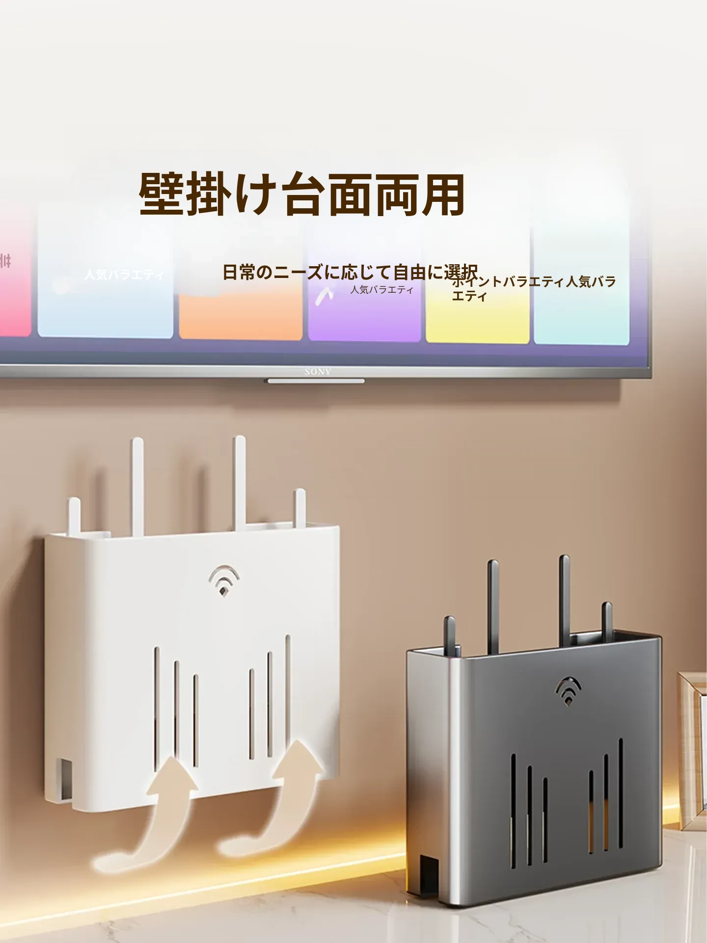 壁掛けWiFi収納ボックス - リモコンやルーターをスッキリ整理!穴あけ不要で簡単取り付け、限られたスペースを有効活用する便利な収納ラック!