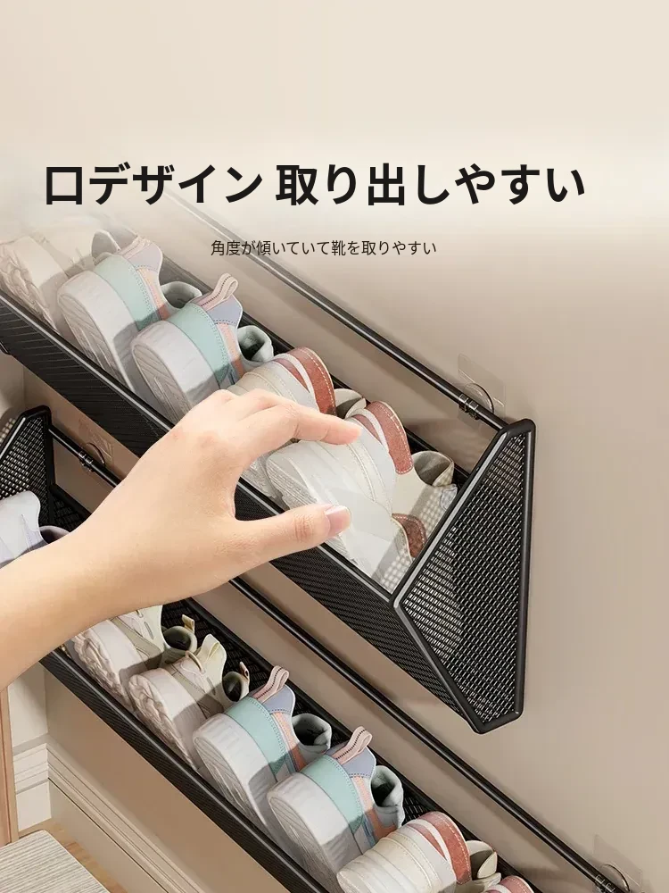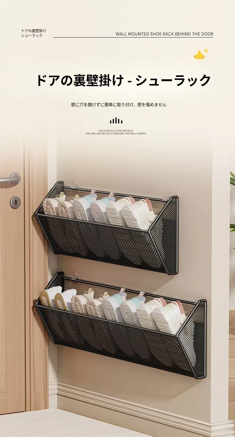 壁掛けシューズラック - バスルームドア裏に最適!穴あけ不要でスッキリ収納できるスリッパホルダー。靴の整理が簡単にできる便利なアイテムです!