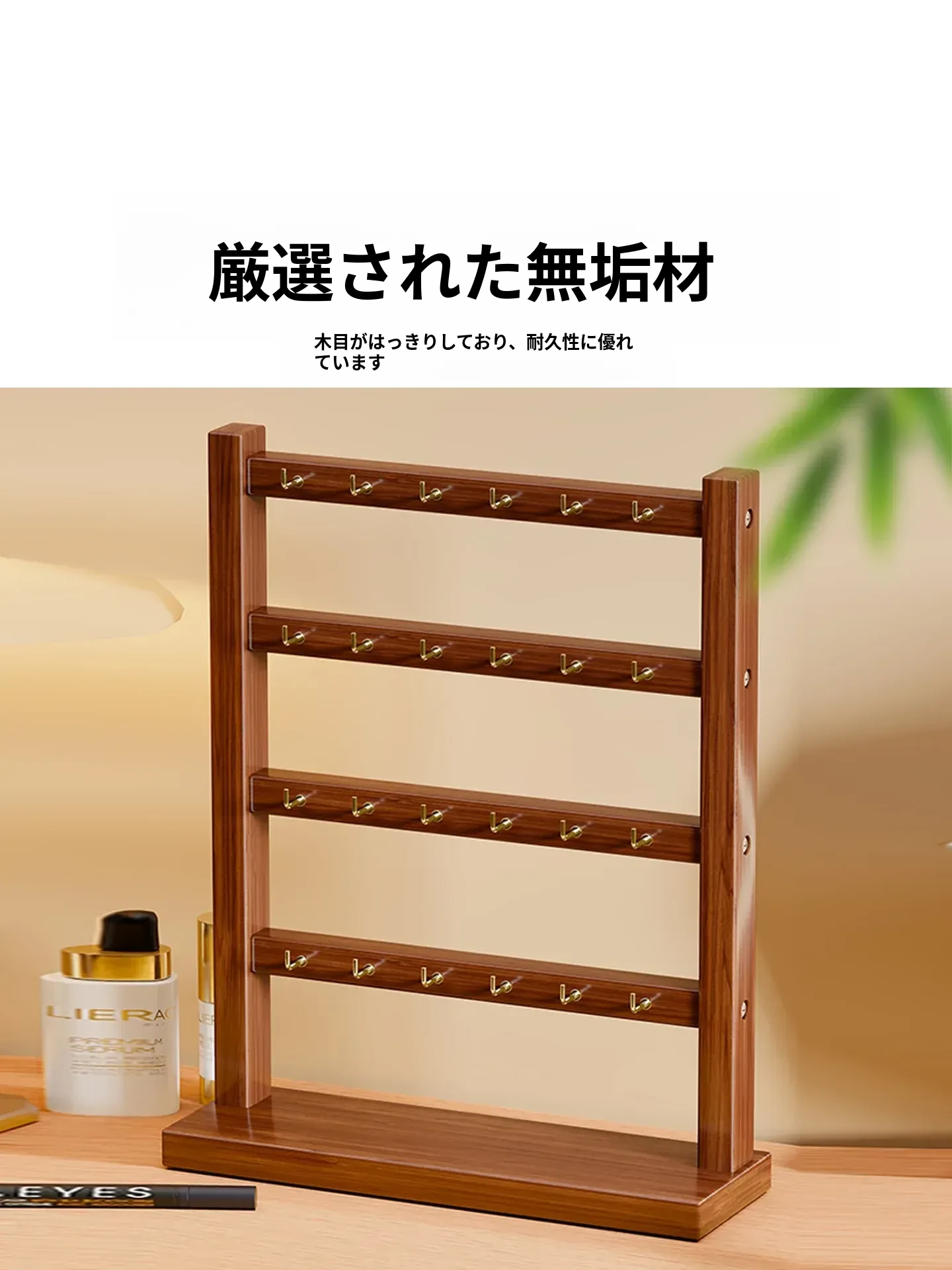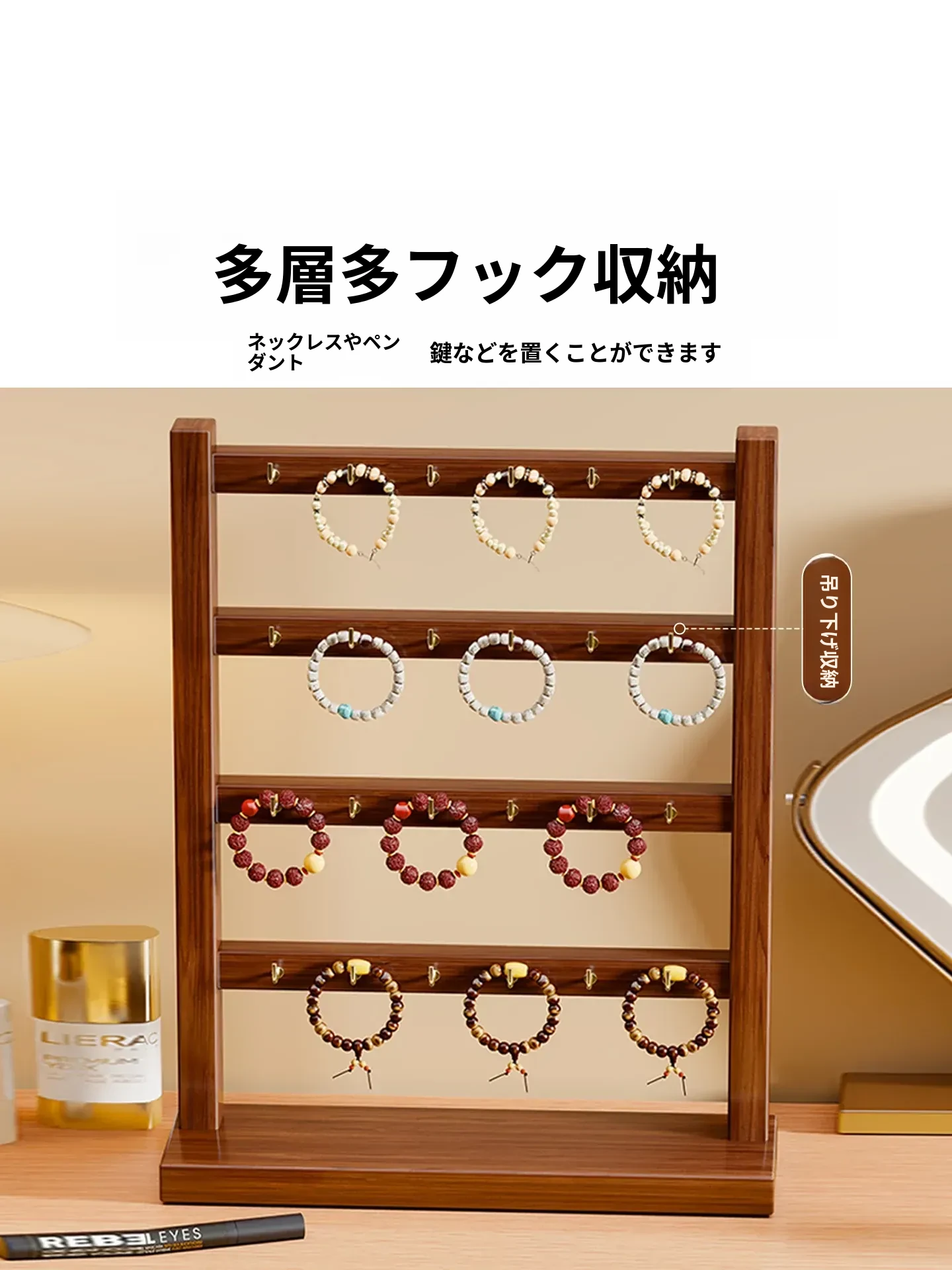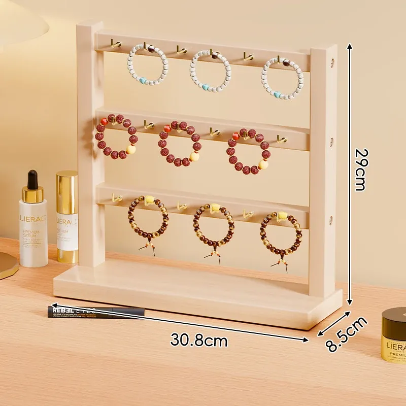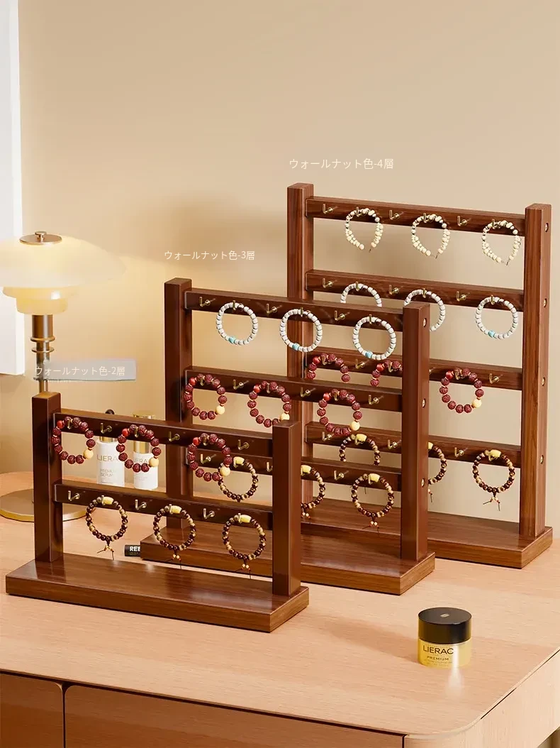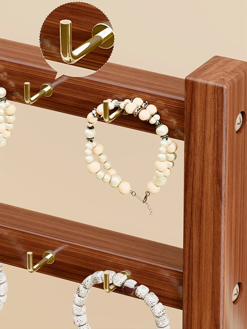 天然木製のジュエリーディスプレイスタンド - 手作りのブレスレットやネックレス、ヘアゴムを美しく整理!仏珠やアクセサリーをスタイリッシュに収納できる、インテリアにも映えるおしゃれなアイテムです。