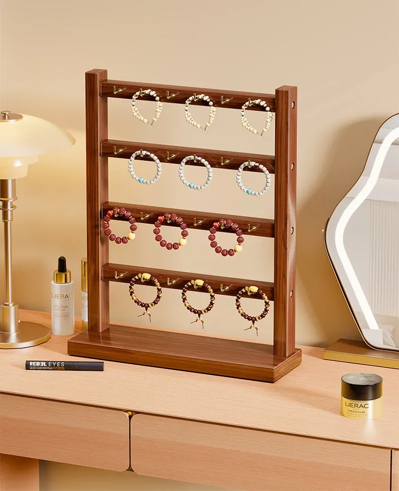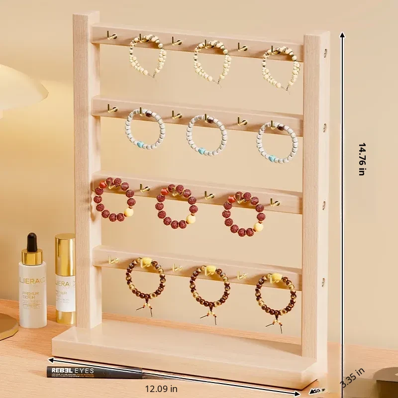 Wooden Desktop Jewelry Display Stand - Elegant Bracelet and Necklace Organizer for Crystal and Decorative Items, Perfect for Showcasing Your Accessories