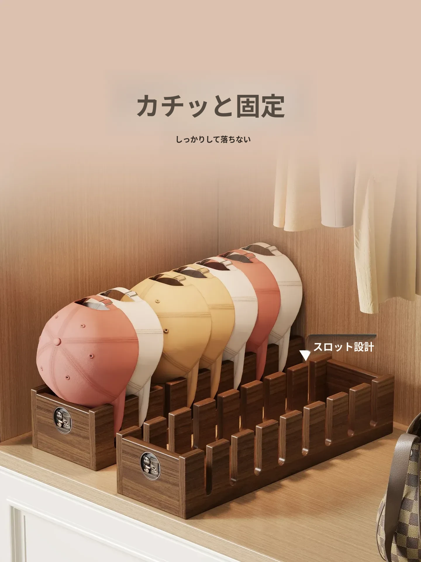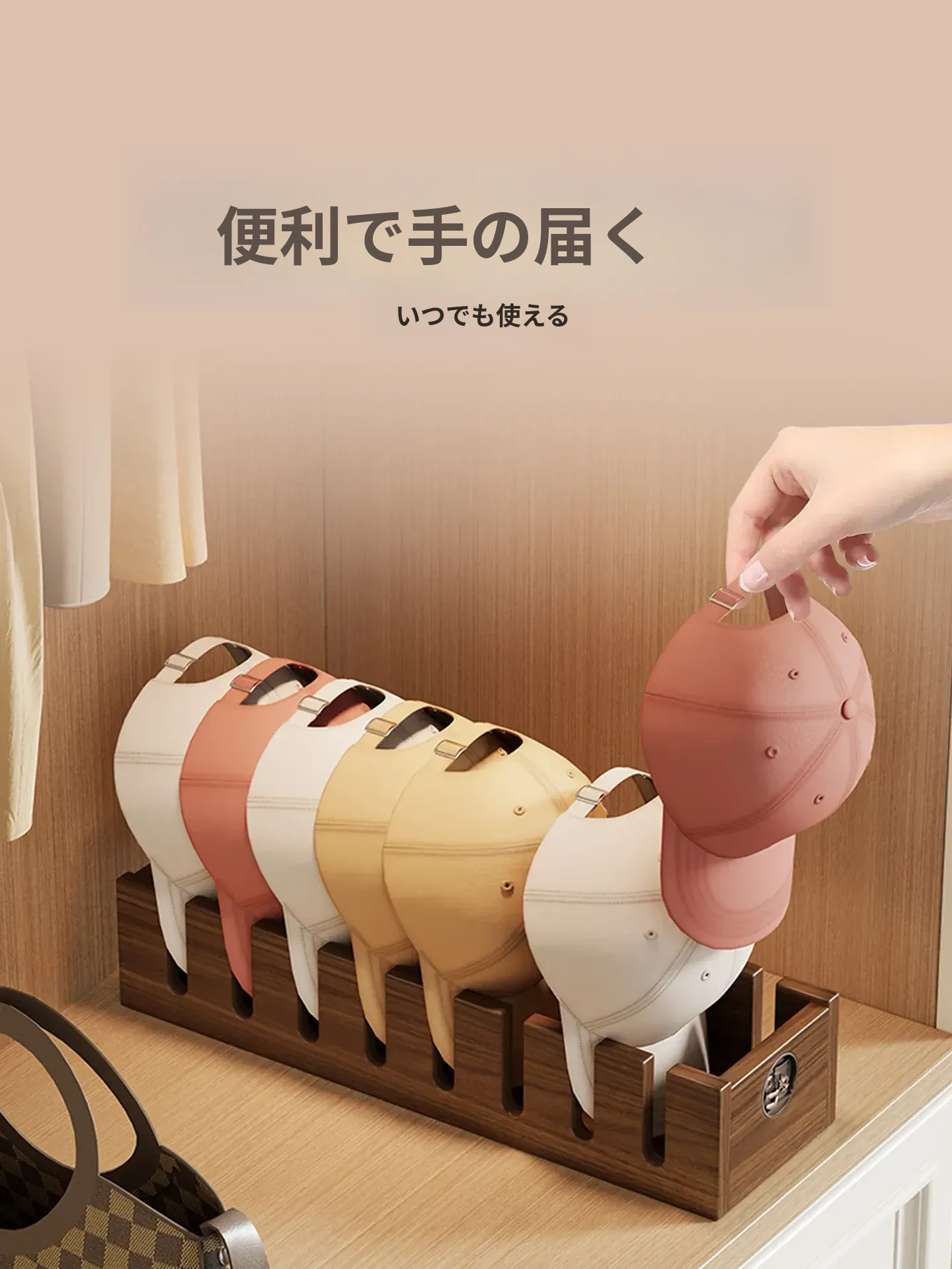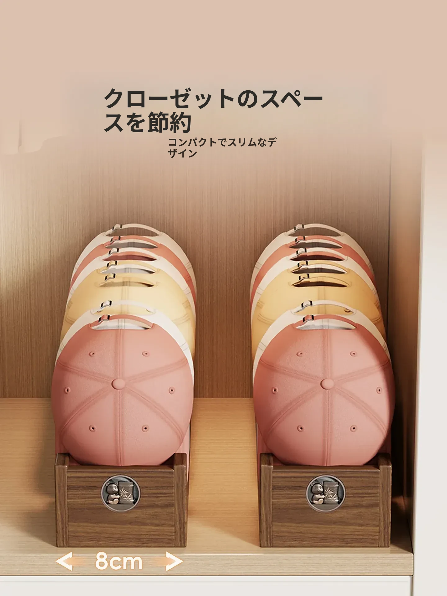 実木製キャップ収納マジック!家庭用テニスキャップスタンド - 木製バケットハット&野球キャップの階層ディスプレイ、クローゼット整理にも最適!おしゃれな収納でキャップを美しく見せる!