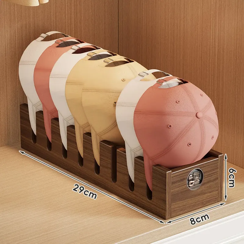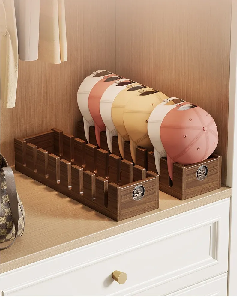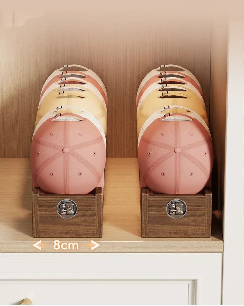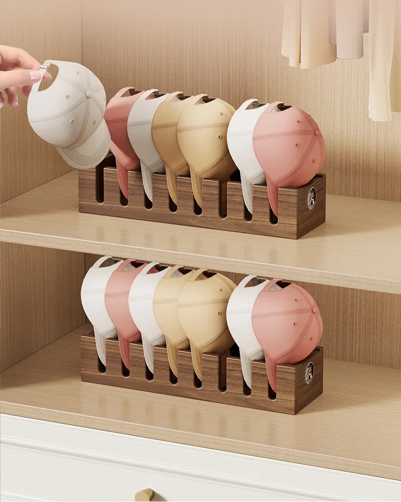 実木製キャップ収納マジック!家庭用テニスキャップスタンド - 木製バケットハット&野球キャップの階層ディスプレイ、クローゼット整理にも最適!おしゃれな収納でキャップを美しく見せる!