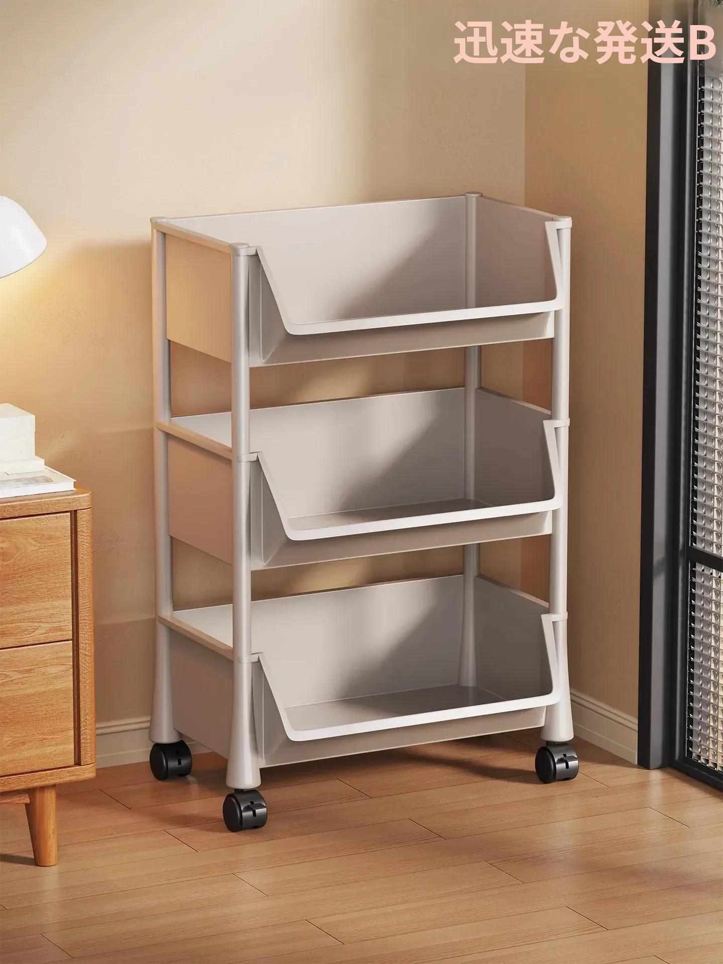小型多層書架ワゴン|リビング・寝室に最適な収納棚|移動可能で便利!お菓子や小物がすっきり整理できるおしゃれな収納ラック!