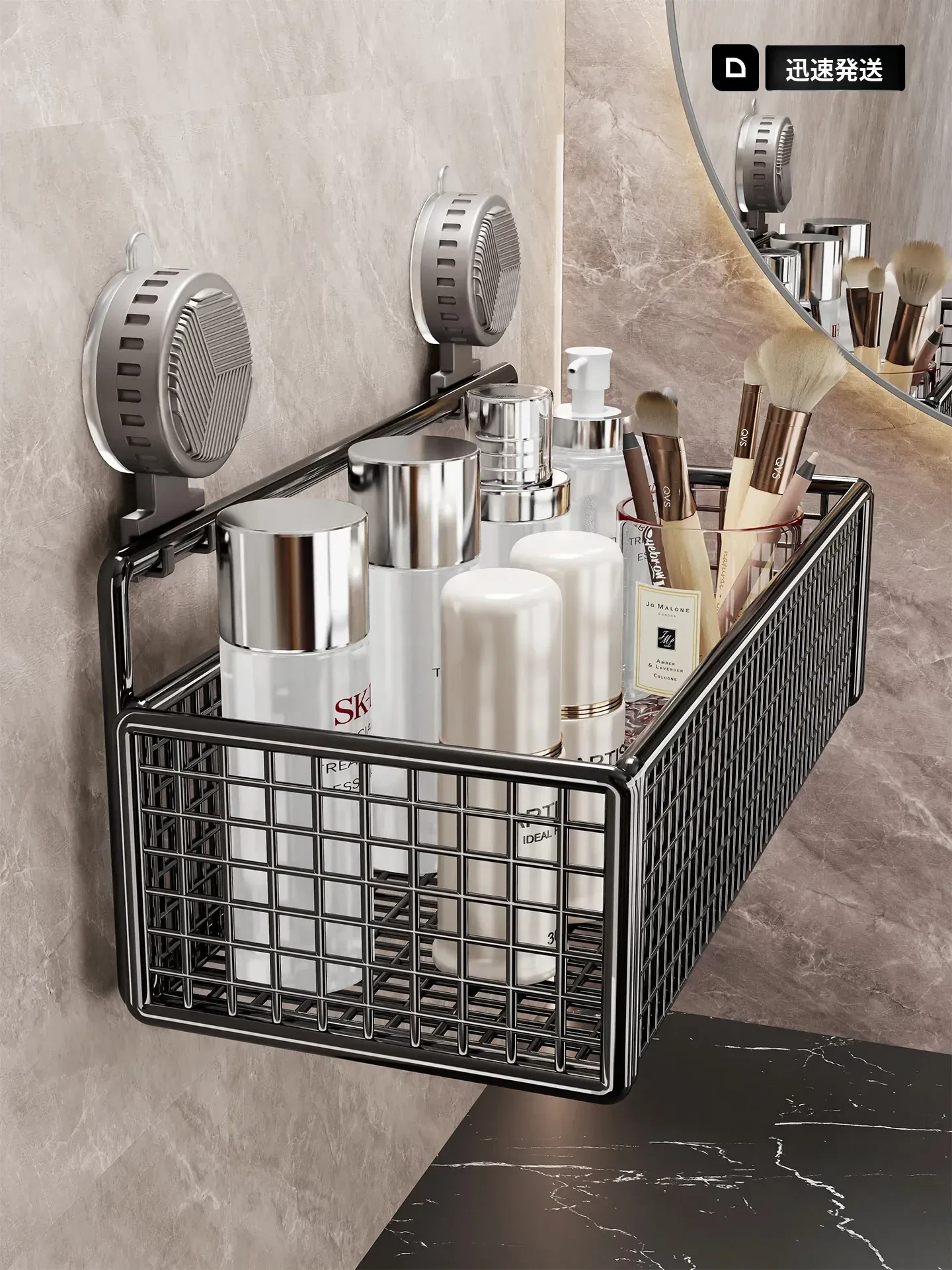 バスルーム用吸盤式収納ラック - トイレや洗面台に最適!壁に穴を開けずに取り付け可能な化粧品ホルダーで、スペースを有効活用。あなたの洗面所をすっきり整理整頓!