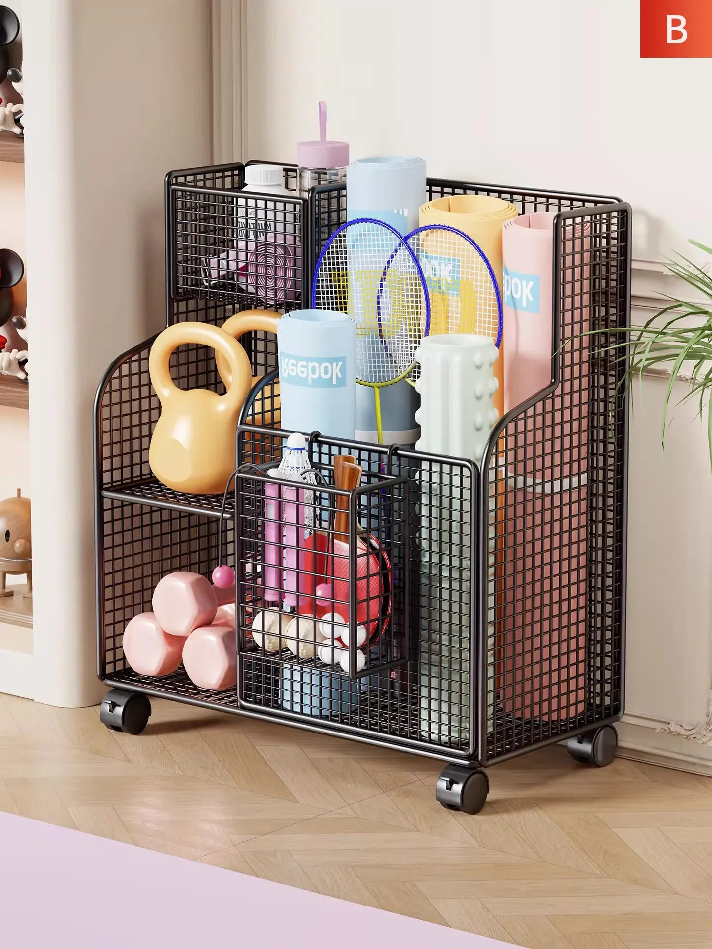大容量ヨガマット収納バスケット|移動可能なフィットネス器具・スポーツツール・バドミントン用隙間収納ラック|家の整理整頓に最適!