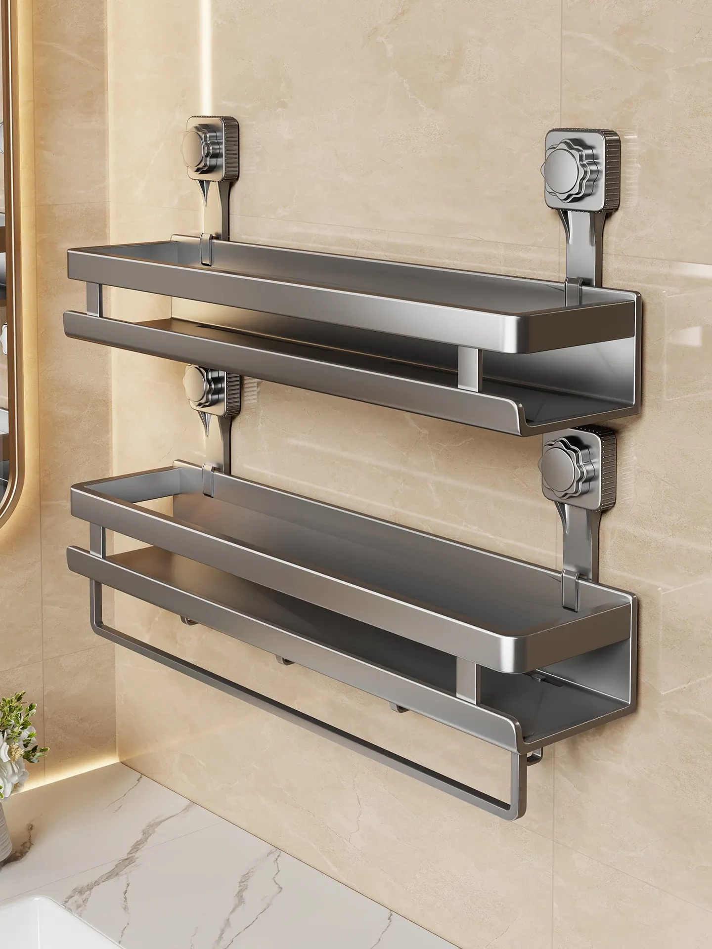 バスルーム用壁掛け収納ラック - 取り付け不要で、洗面台や浴室の必需品をスマートに整理!多機能デザインで、スペースを有効活用して清潔感を保ちます!