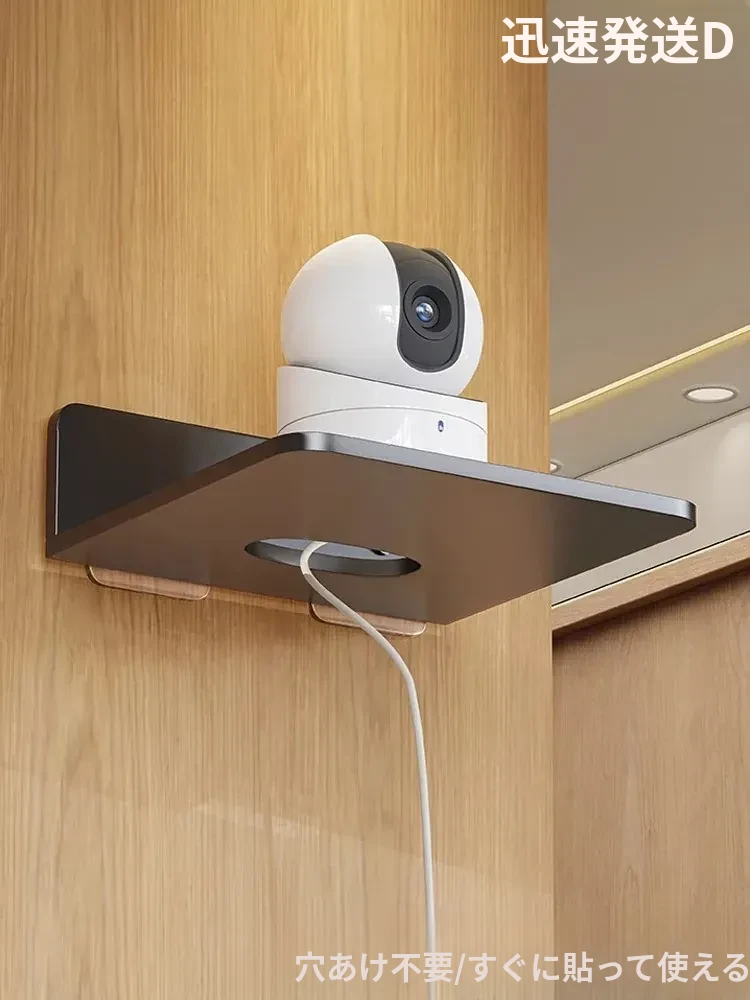 壁掛け収納棚カメラスタンド 家庭用監視カメラルーター置き台 穴あけ不要の壁面設置 室内外対応の便利なトレイ!あなたの安全を守る、スマートな収納ソリューション!