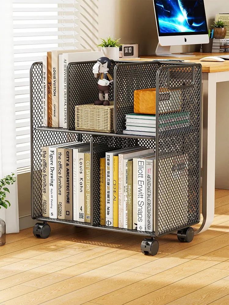 移動式キャスター付き多層収納ラック!家庭用・学生向けの書類整理に最適な書斎の必需品!書籍や文房具をスマートに整理整頓。デスク下にぴったりフィット!